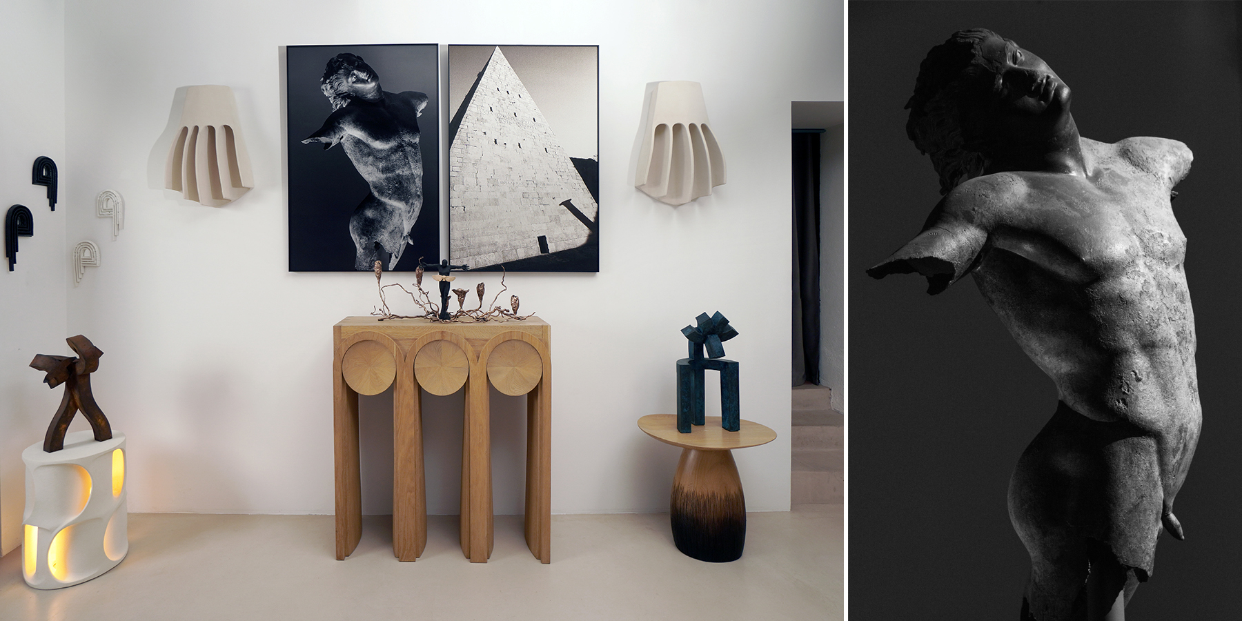 Dans sa galerie à Toulouse, Antoine Vignault conjugue art contemporain et design de collection à travers une sélection de peintures, sculptures, photographies, mobilier d’artistes et objets rares. Chaque œuvre puise son inspiration dans les mythes, légendes et récits qui traversent les civilisations et laissent émerger des symboles intemporels. Aux côtés de ces pièces uniques se dévoilent des antiquités du XXe siècle, patiemment chinées Emmanuelle Vidal, antiquaire spécialiste du design des années 50 à 80.