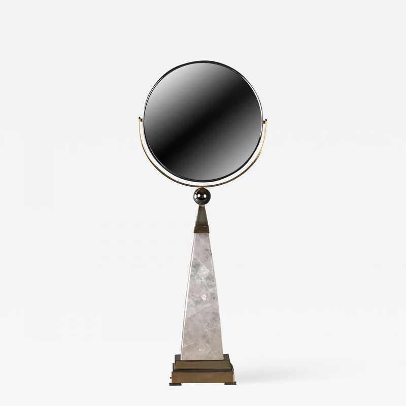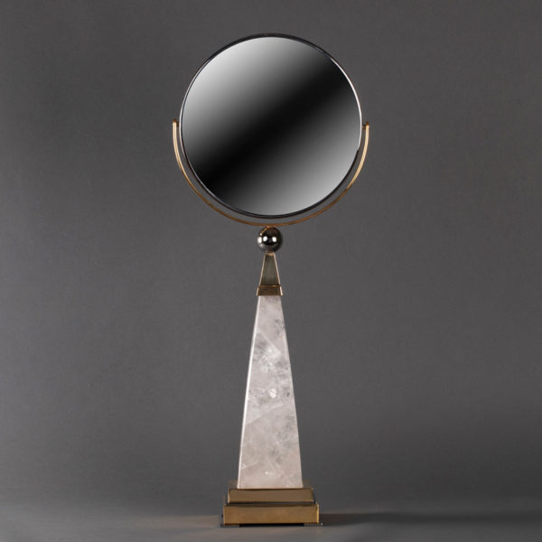 Table mirror in brass and rock crystal. Accompanied by craftsmen, Alexandre Vossion assembles each piece by hand in his Parisian workshops, always favoring exceptional materials.