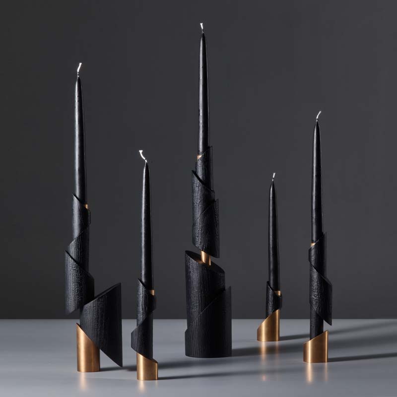 Inspiration: The Ashes To Ashes candle holder collection echoes the Collapse collection, using the same shapes and effects on imbalance