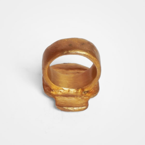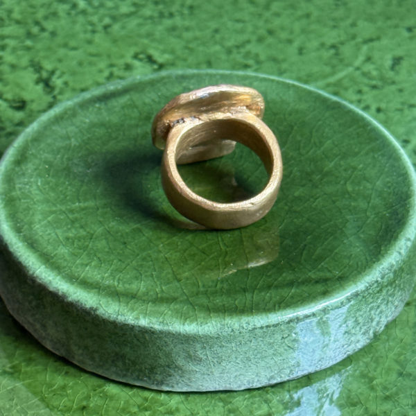 Inspiration: Michelle Crouzet’s unique jewels are sculpted in bronze and are inspired by the shapes and symbols of Antiquity, between mythology, nature and archaeological traces. The rings, cuffs and pendants summon animals, fish, foliage and engraved figures, like so many timeless talismans. The material work, deliberately raw and patina, echoes buried treasures and votive adornments, transforming each piece into an object of memory and identity.