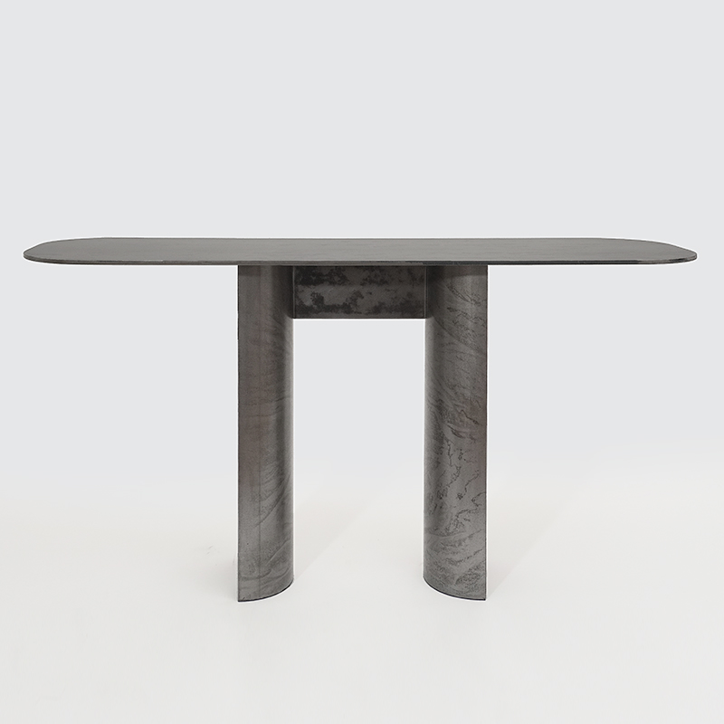 Contemporary console in rolled and patinated crude steel. A unique piece with a minimalist design signed Pierre Mounier, handcrafted in his workshops in Bordeaux.