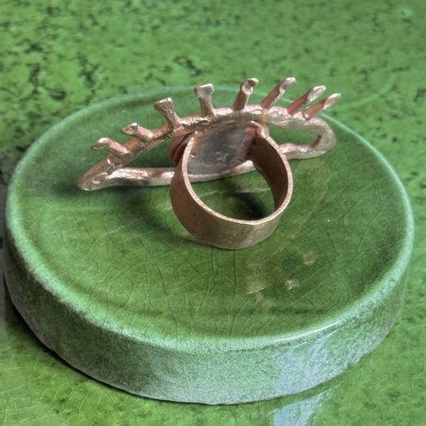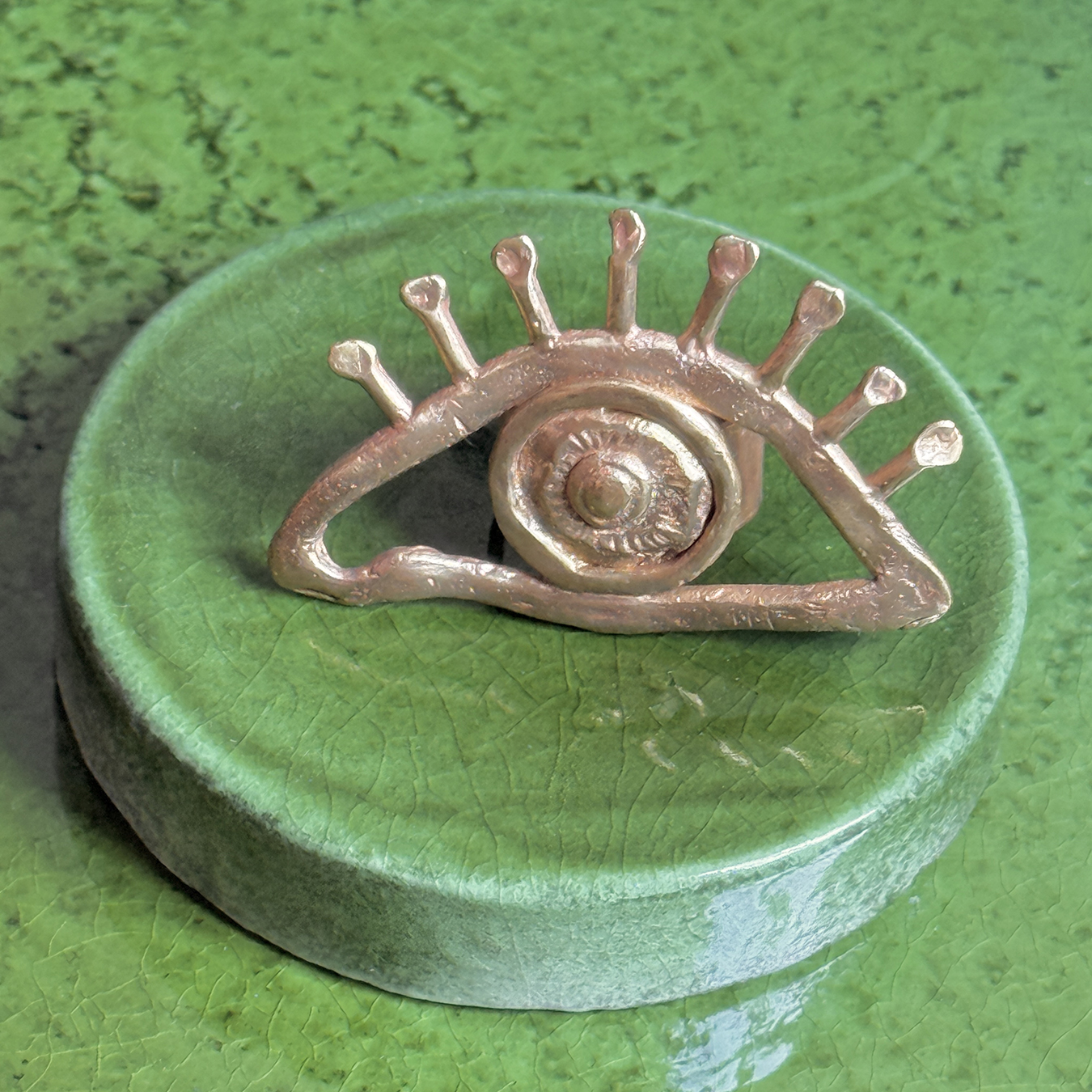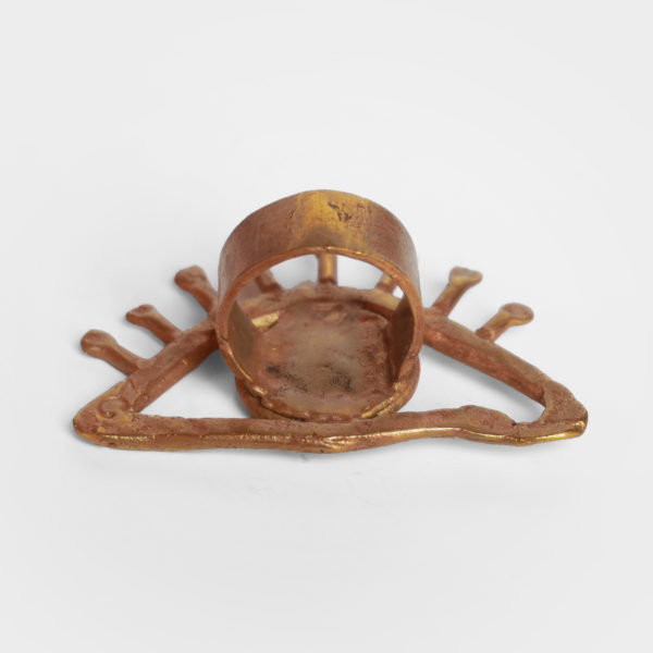 Inspiration: Michelle Crouzet’s unique jewels are sculpted in bronze and are inspired by the shapes and symbols of Antiquity, between mythology, nature and archaeological traces. The rings, cuffs and pendants summon animals, fish, foliage and engraved figures, like so many timeless talismans. The material work, deliberately raw and patina, echoes buried treasures and votive adornments, transforming each piece into an object of memory and identity.