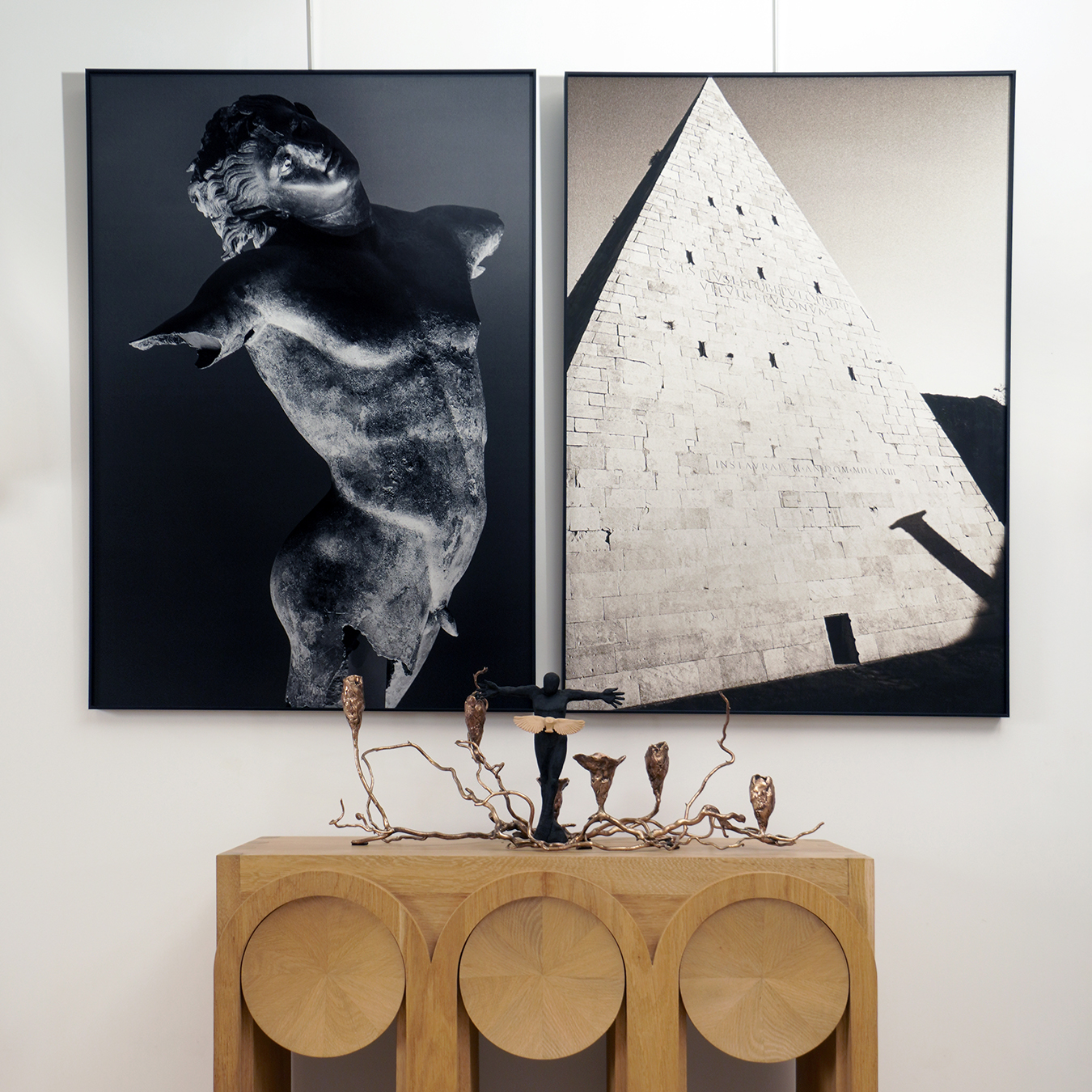 Through a subtle play of light and shadow, he isolates the figure from its museum context to restore it to its sacred and timeless dimension. Bronze seems to breathe, vibrate, oscillate between abandonment and ecstasy. Through his gaze, Ferranti invites us to a silent meditation on the fragmentary beauty of the ancient world, on what remains when the centuries pass: a gesture, a curve, an energy. The Faun then becomes less an archaeological vestige than a passing being, messenger of a buried memory. (Sculpture preserved in the Museo del Satiro Danzante.)