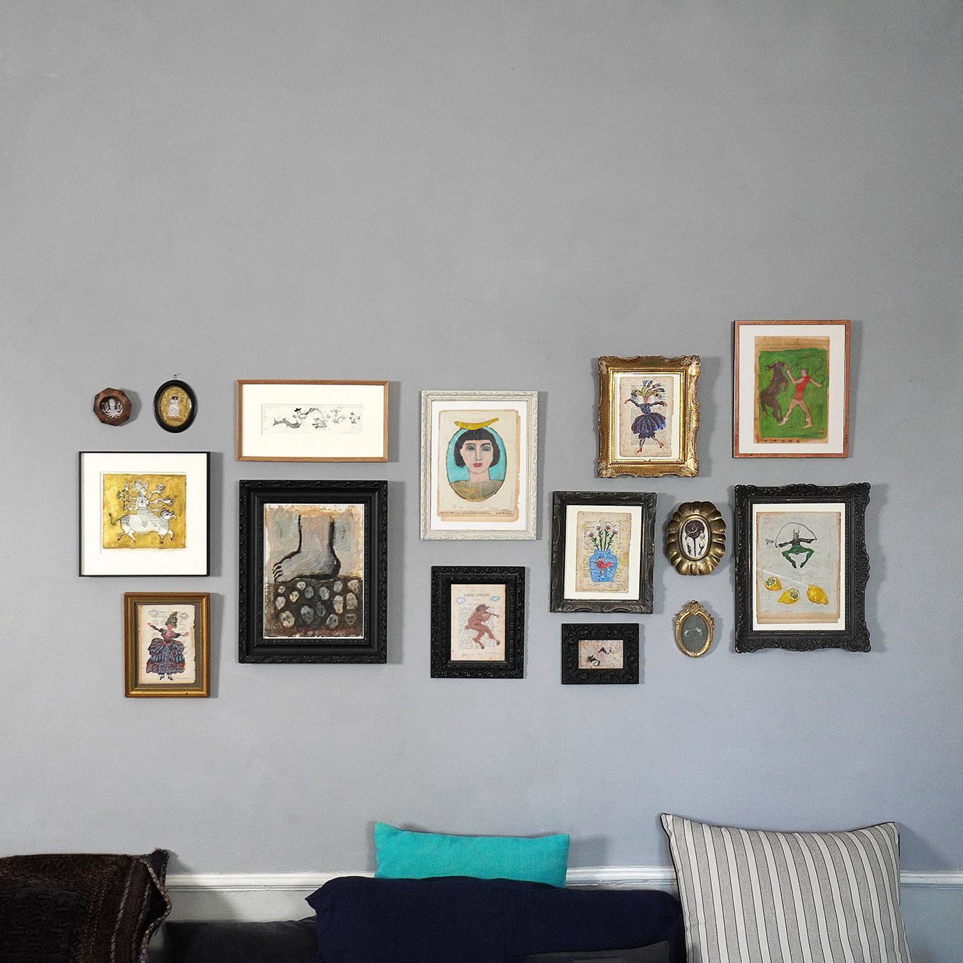 The whole evokes both the world of childhood, of storytelling, and a form of assumed, gentle and sovereign femininity. The artist’s naïve and direct style reinforces the mystical and accessible aspect of this small imaginary icon. This painting, delicate and luminous, seems to invite the viewer to believe in magic again.