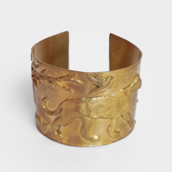 Passionate about fashion, style, and trends, Michelle Crouzet studied at Studio Berçot. As the director of a spinning and weaving company for several years, she developed several collections of clothing and furnishing fabrics each season for export worldwide, anticipating trends and fashion movements. Michelle Crouzet’s unique jewelry is sculpted in bronze and inspired by the shapes and symbols of Antiquity, blending mythology, nature, and archaeological evidence.