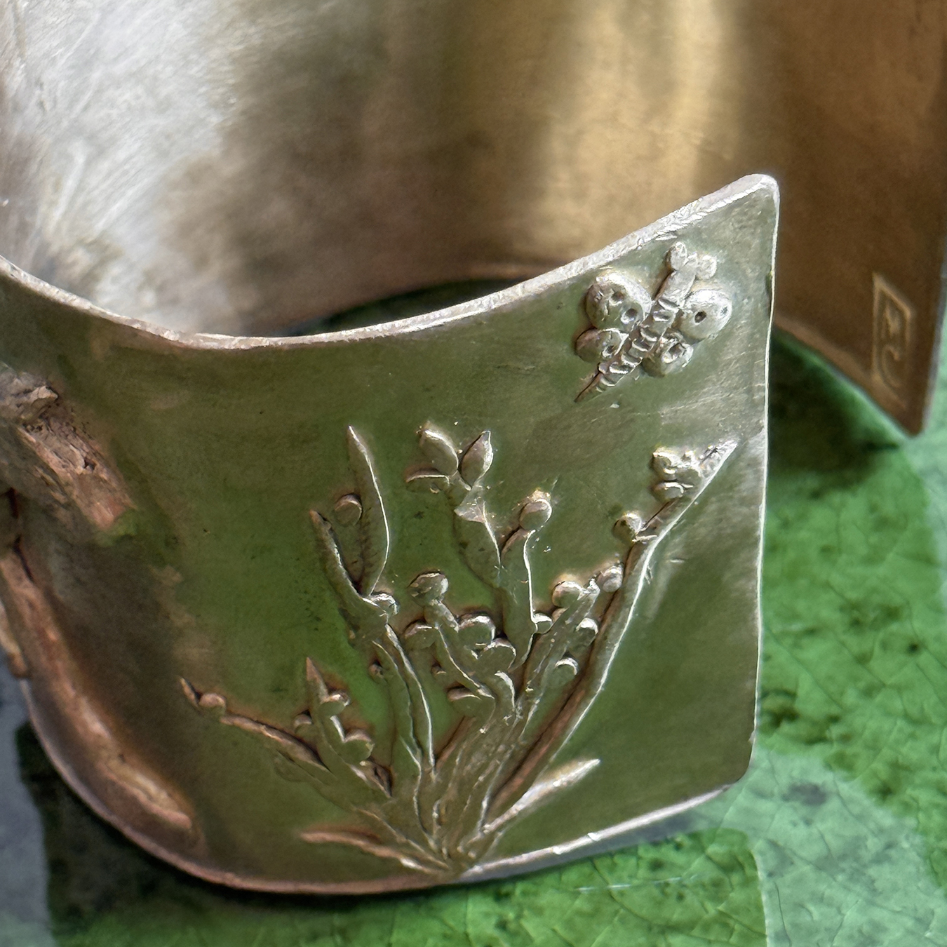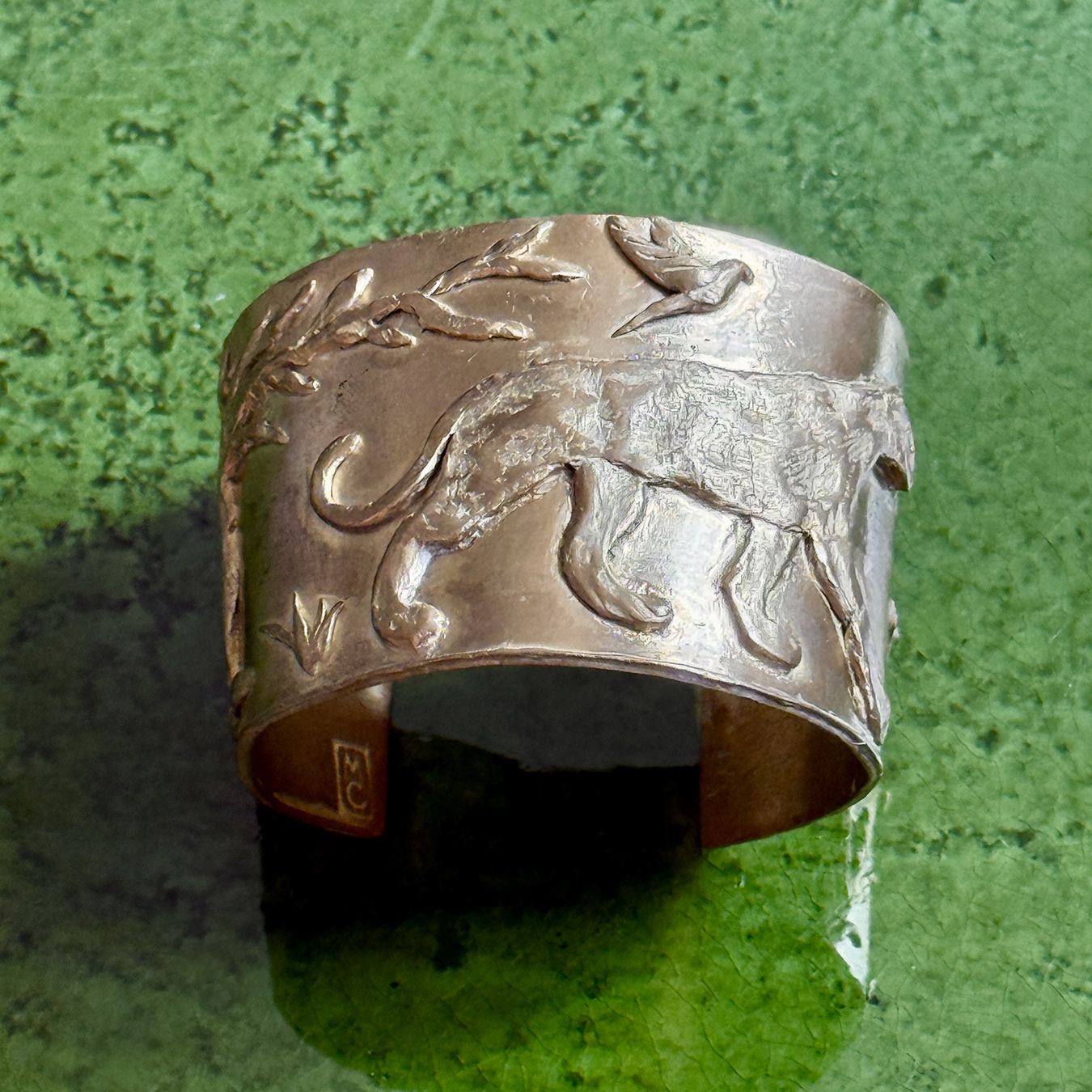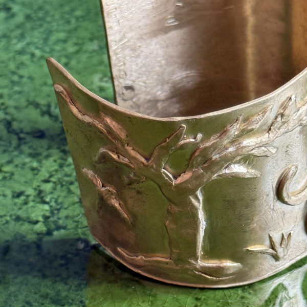Michelle Crouzet’s bronze bracelets, cuffs and pendants summon animals, fish, foliage and engraved figures, like so many timeless talismans.