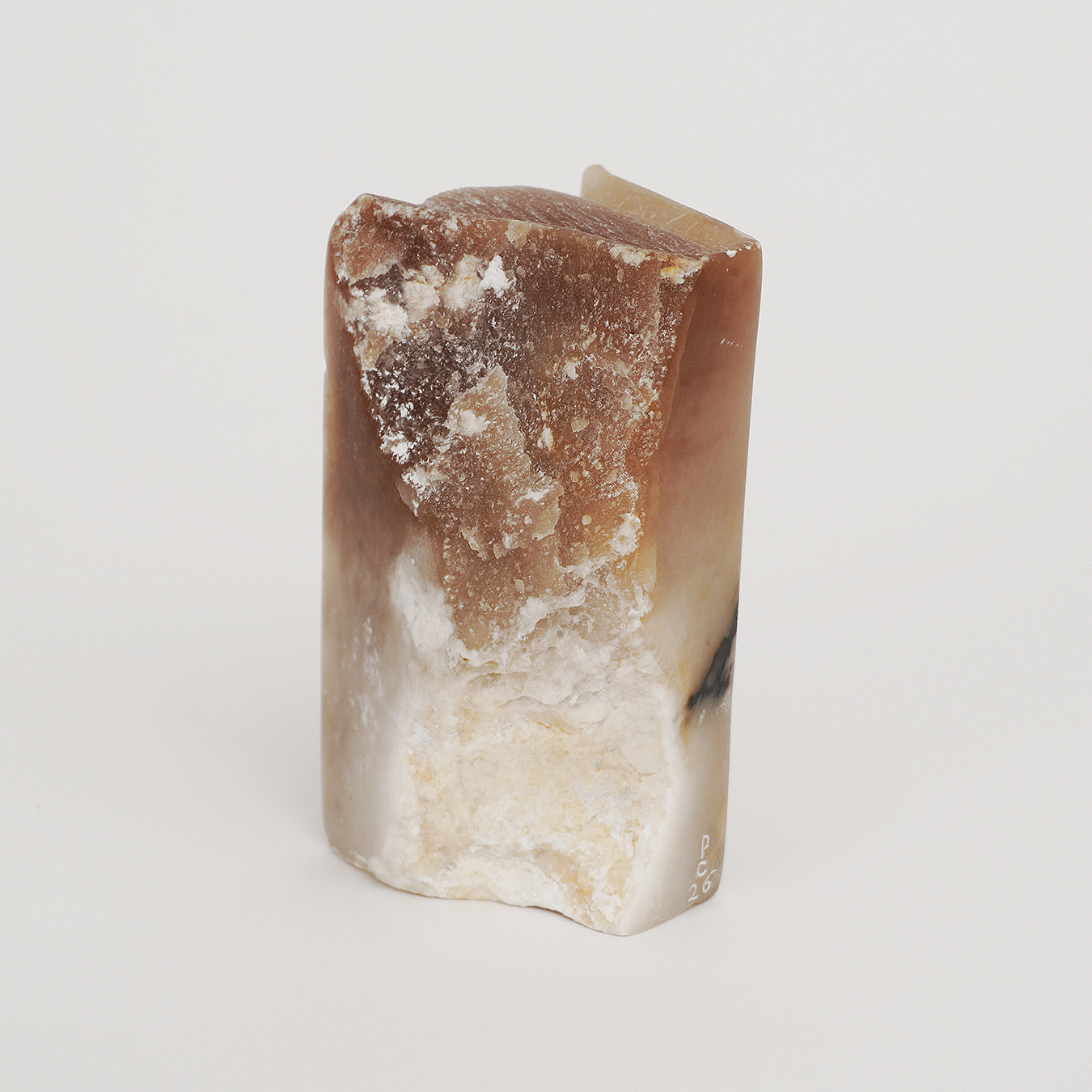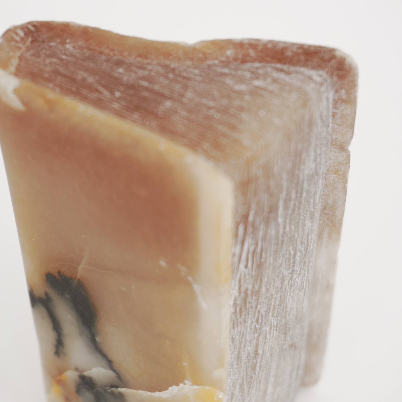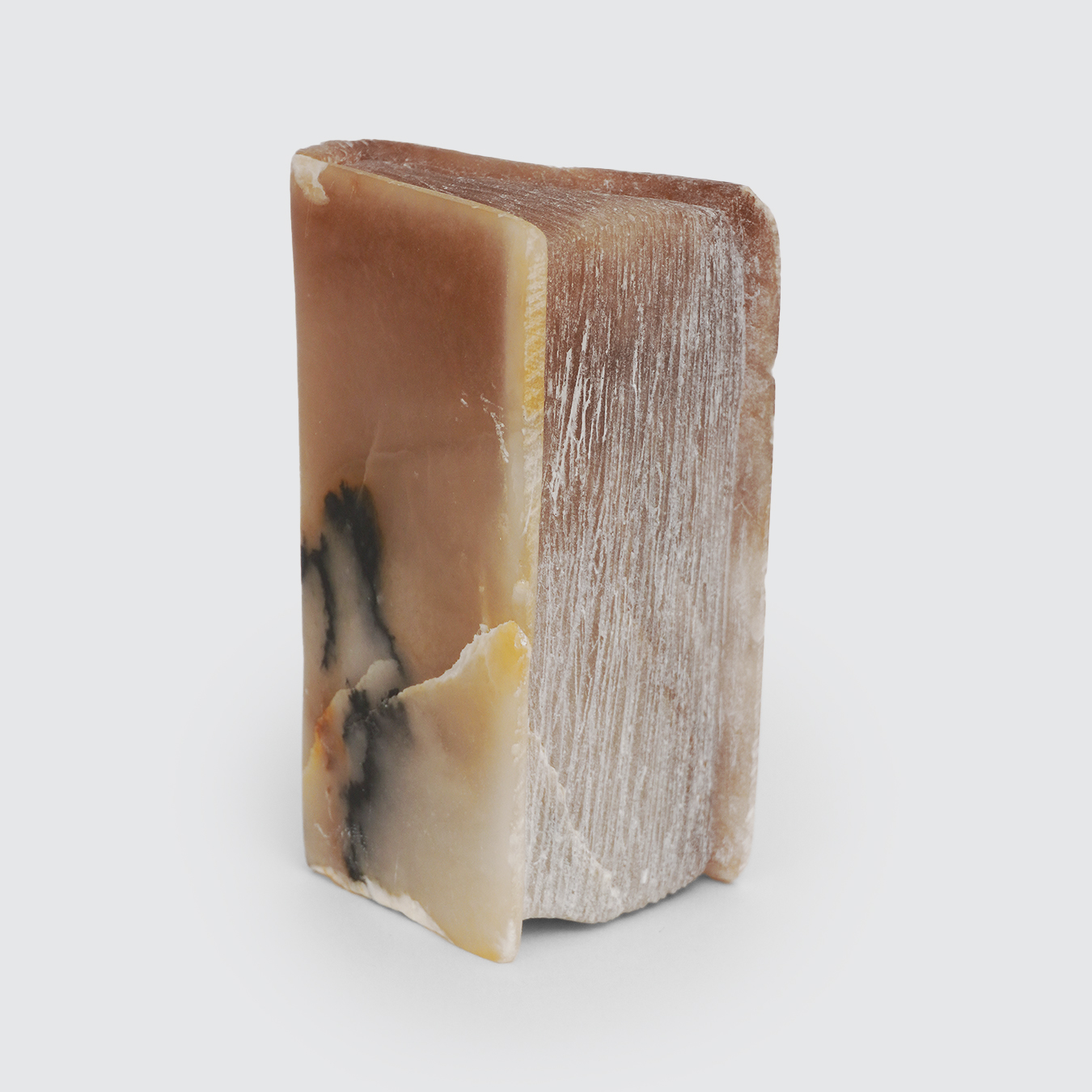 Closed alabaster book by Pascal Cerchi mixing raw parts and carefully polished surfaces.