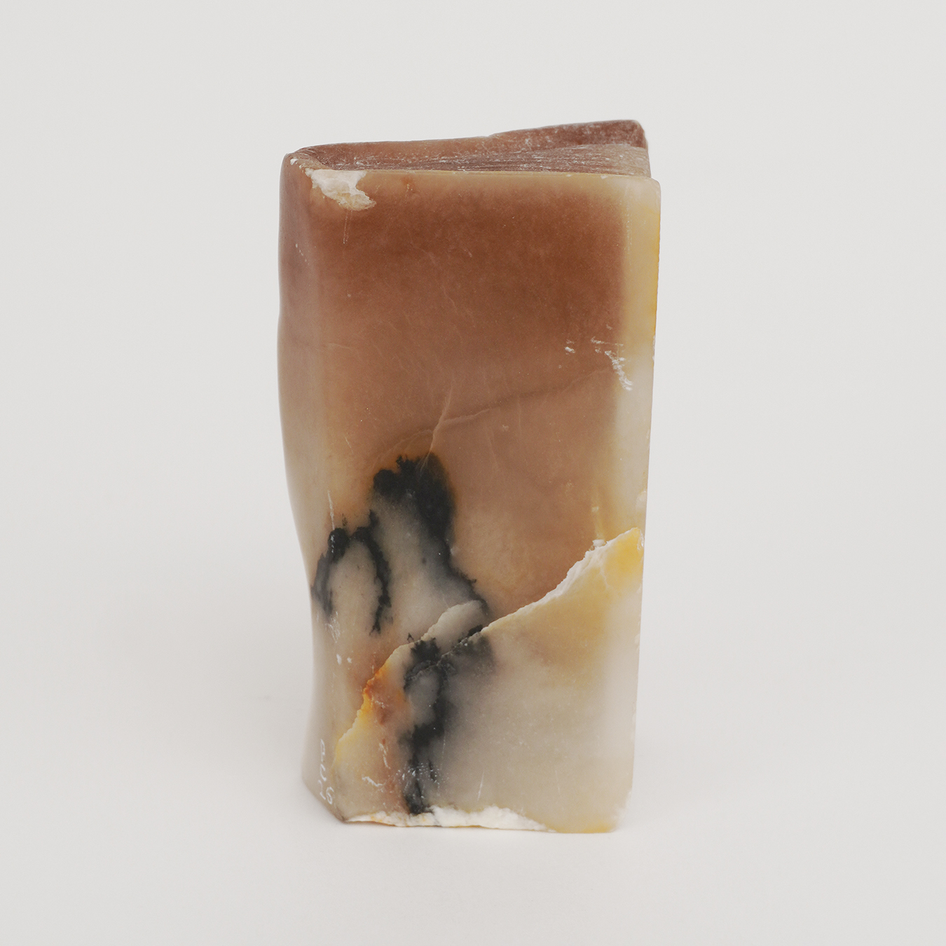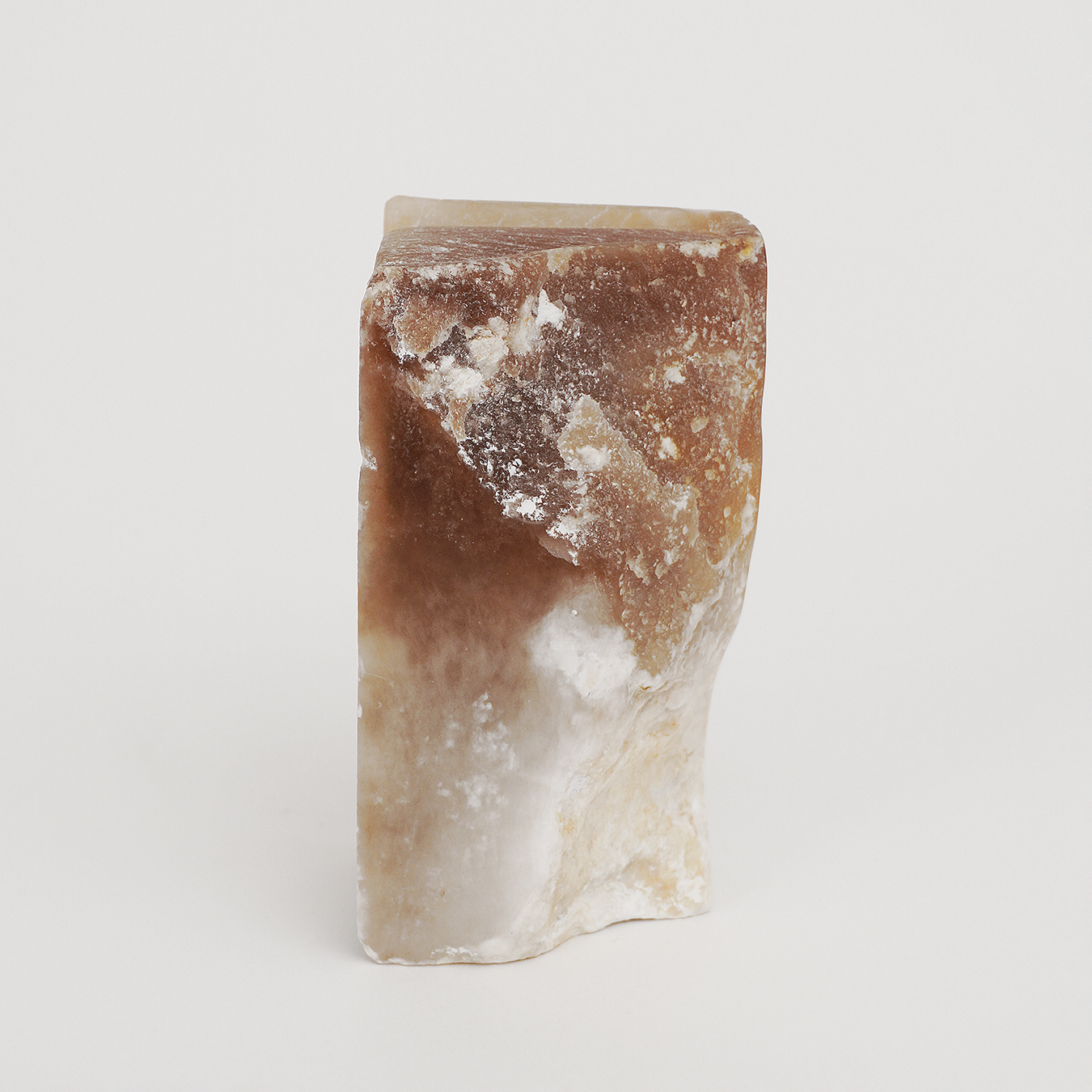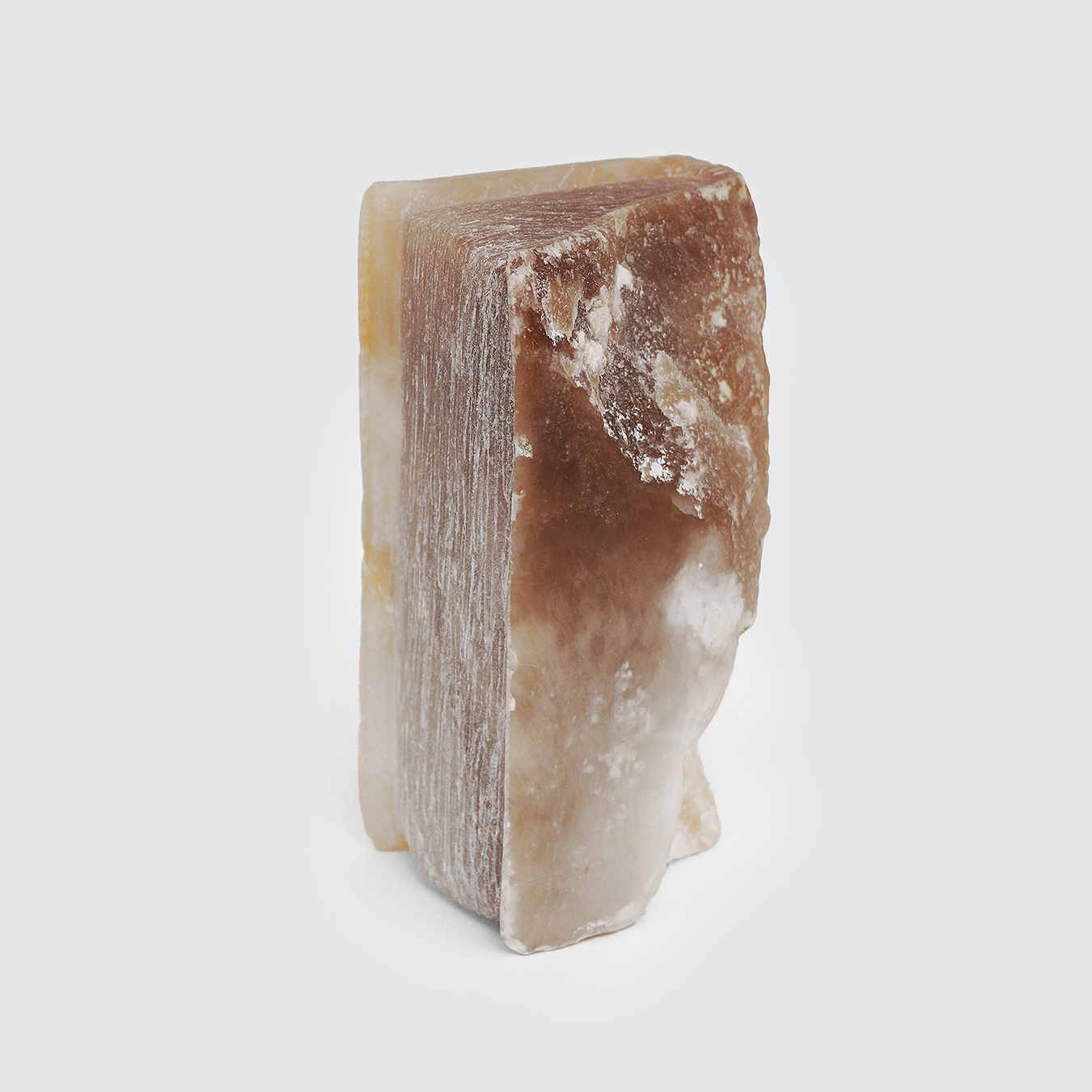 Closed alabaster book by Pascal Cerchi mixing raw parts and carefully polished surfaces.