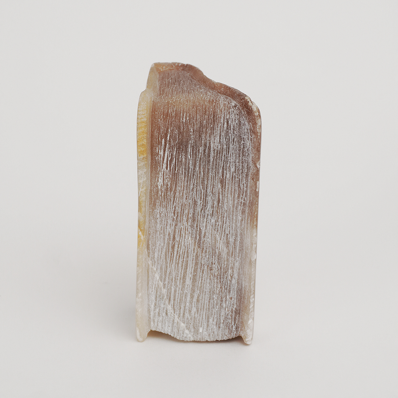 Inspiration: In this sculpture, Pascal Cerchi evokes the Mutus Liber — the “silent book”, an emblematic work of the alchemical tradition consisting solely of images. The book, here closed, becomes matter: alabaster, with its veins and areas of opacity, becomes a support for buried secrets. The sculptural gesture keeps this object between silence and revelation. The artist plays with the boundary between the mineral and the symbolic, inviting the viewer to project his own stories onto this book whose pages remain forever sealed.