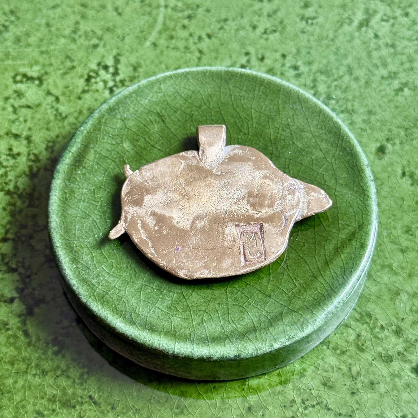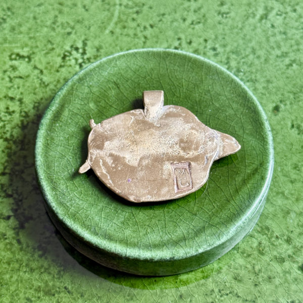 Inspiration: Michelle Crouzet’s unique jewels are sculpted in bronze and are inspired by the shapes and symbols of Antiquity, between mythology, nature and archaeological traces. The rings, cuffs and pendants summon animals, fish, foliage and engraved figures, like so many timeless talismans. The material work, deliberately raw and patina, echoes buried treasures and votive adornments, transforming each piece into an object of memory and identity.
