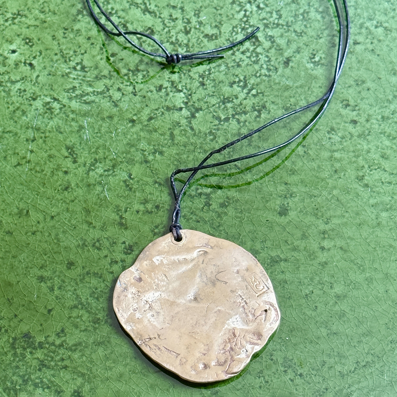 Inspiration: Michelle Crouzet’s unique jewels are sculpted in bronze and are inspired by the shapes and symbols of Antiquity, between mythology, nature and archaeological traces. The rings, cuffs and pendants summon animals, fish, foliage and engraved figures, like so many timeless talismans. The material work, deliberately raw and patina, echoes buried treasures and votive adornments, transforming each piece into an object of memory and identity.