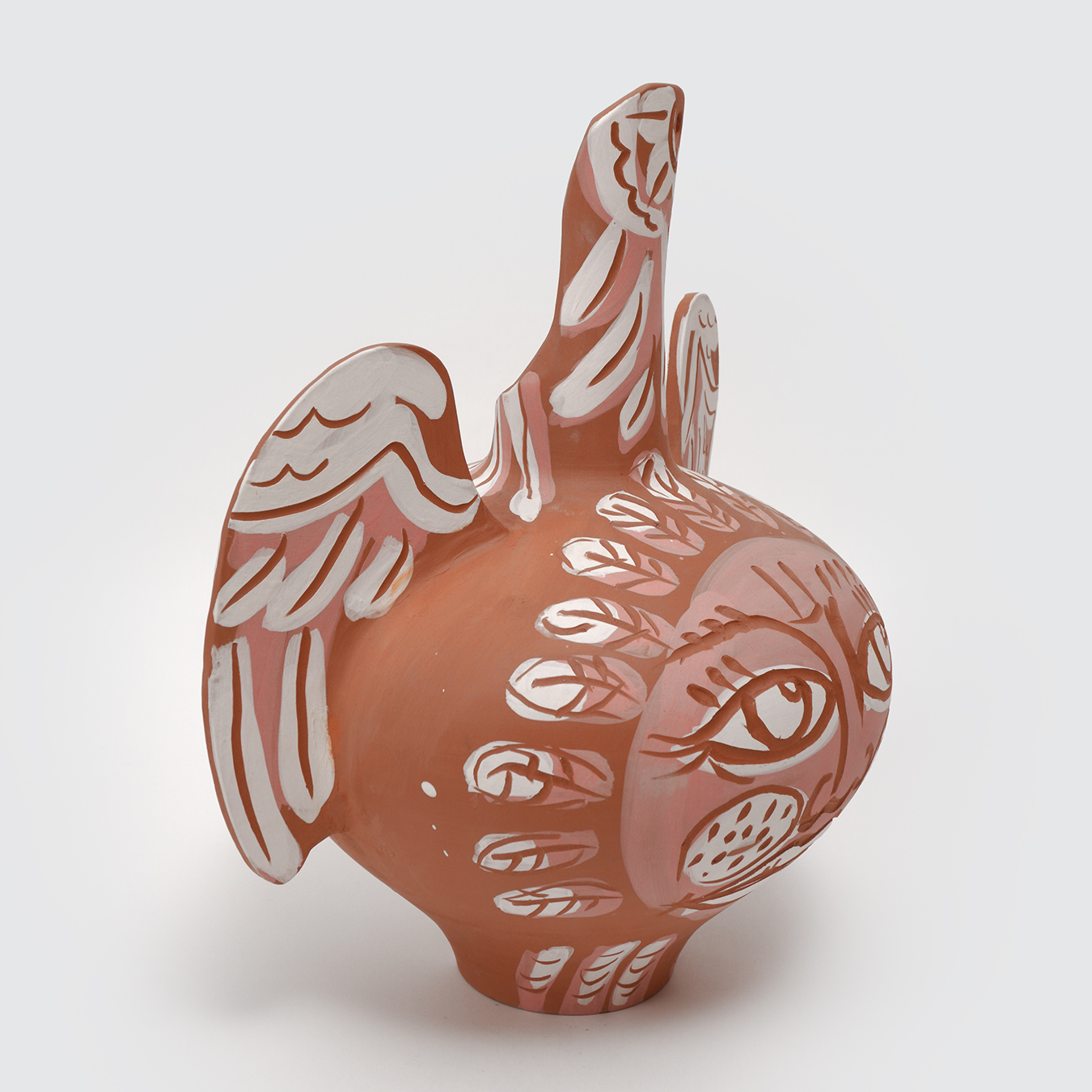 Large winged vase in unglazed and hand-painted terracotta by Charles Brun Theremin alias CBTH.