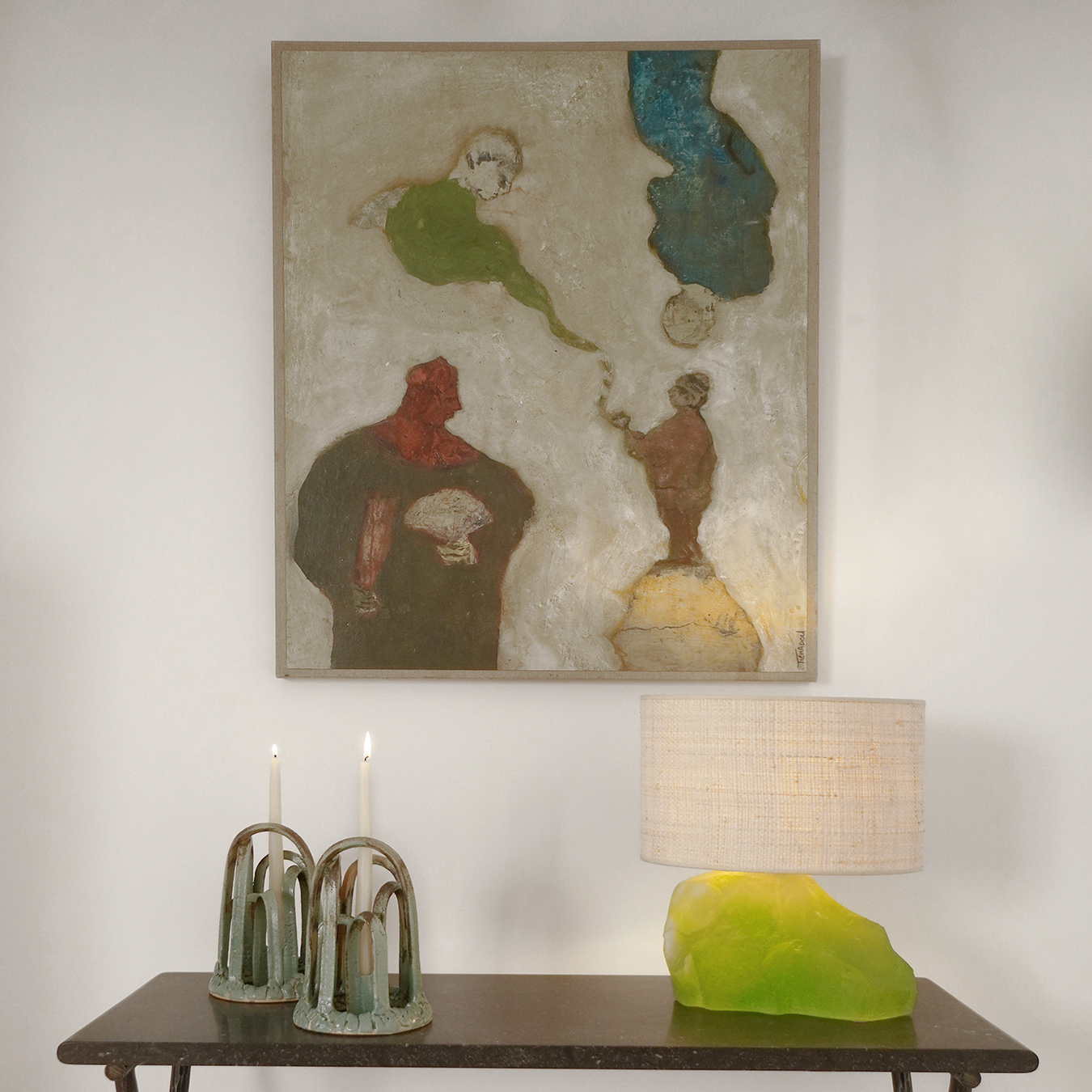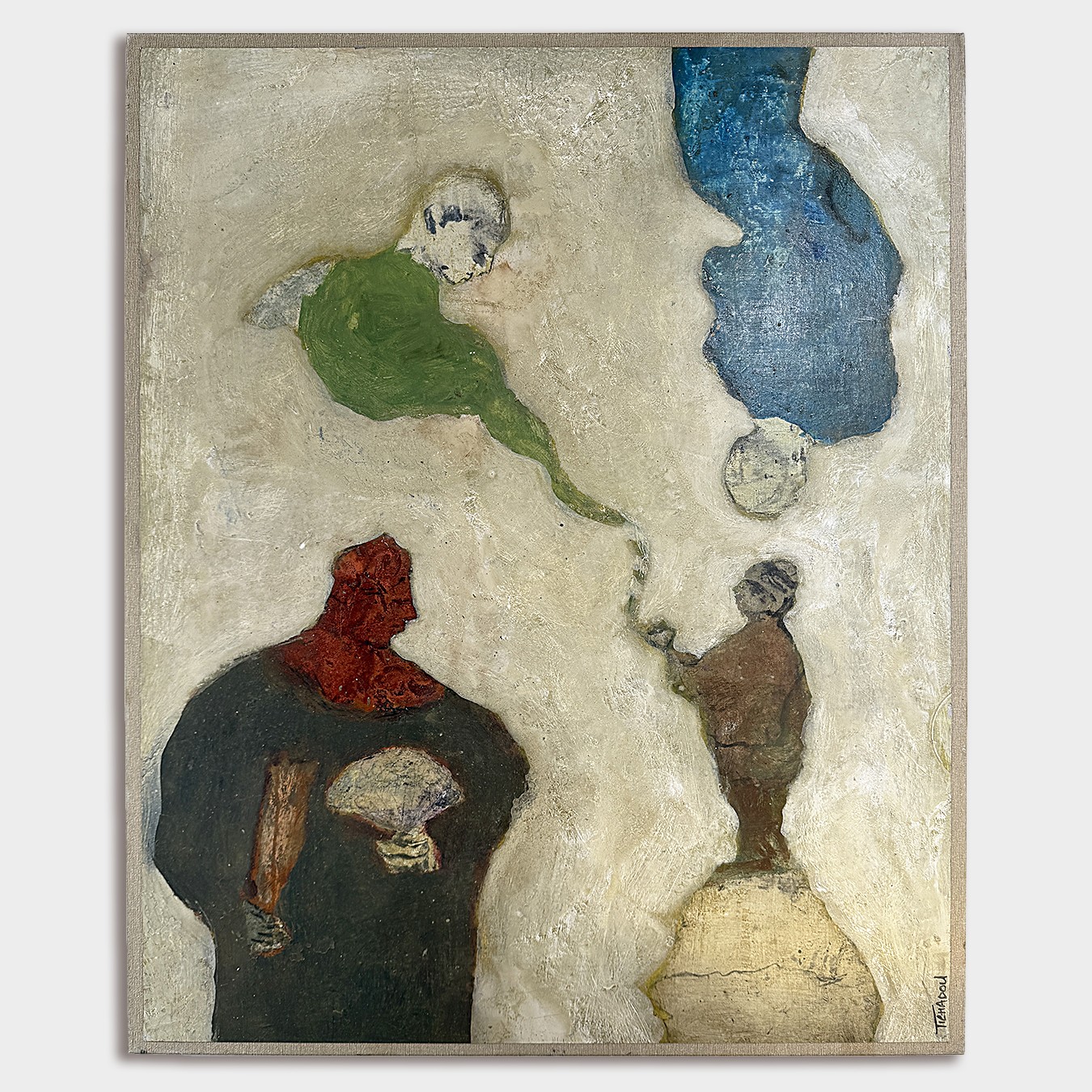 Inspiration: Corinne Tichadou weaves links between the past and the present. She paints the human and questions his relationship to the world: to love, to family, to his courage, to his destiny, to his place in society. Man has always been surrounded by doubts and fears rooted in the world around him. His characters echo memory, fragility, the strangeness of the soul, vulnerability, melancholy, intimacy and silence. It is a world of thought.