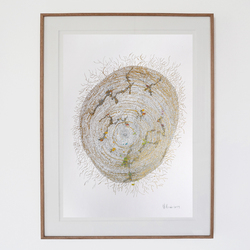 Inspiration: Through his abstract drawings, the artist plunges us into celestial or underwater worlds, leading us into a sensory contemplation provoked by his plastic vocabulary made of dots, lines and circles.