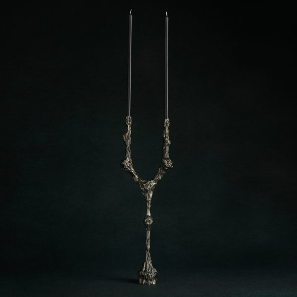 A real handmade sculpture, this white bronze candle holder can accommodate 2 candles. A unique piece by William Guillon, French designer influenced by powerful artistic universes and imbued with a sweet melancholy.