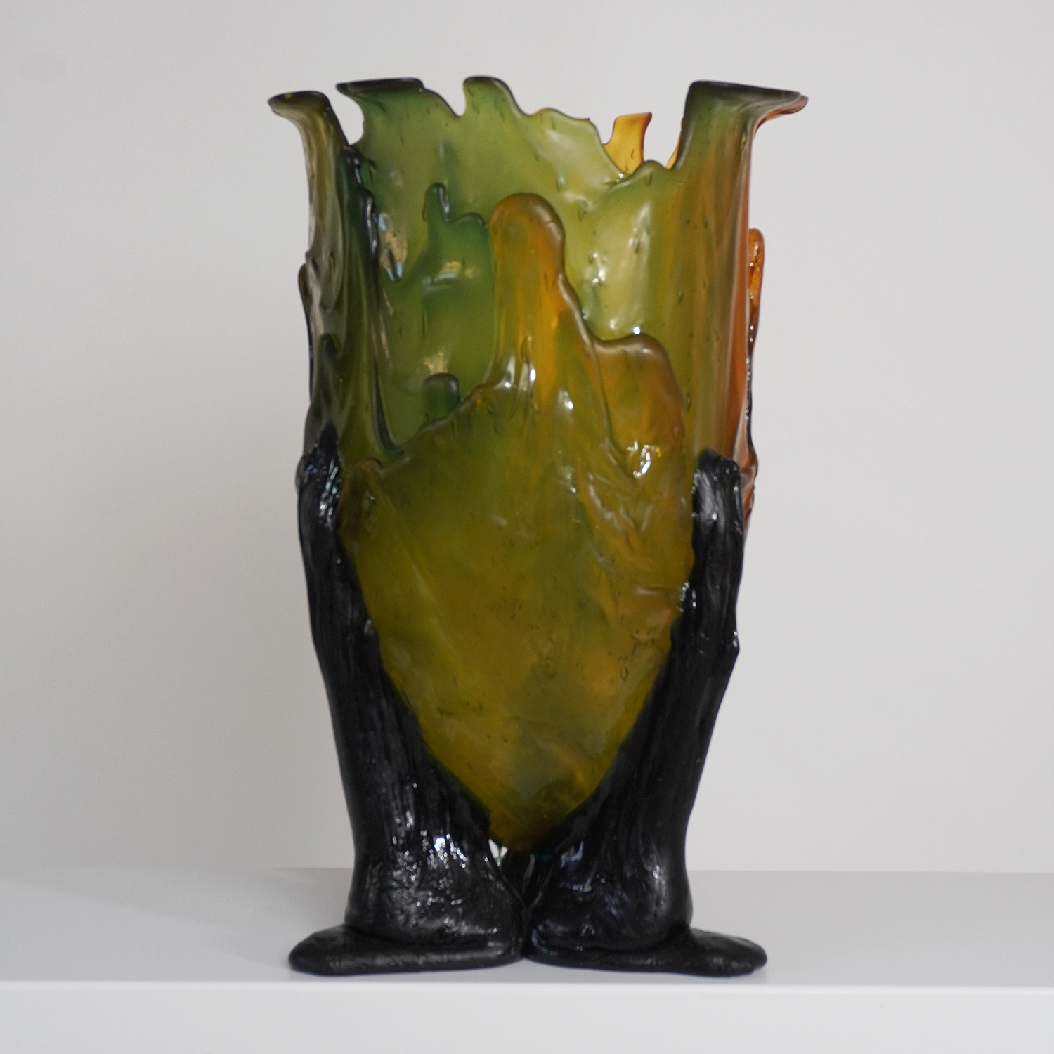 Grand vase vert et jaune vintage en édition limitée de Gaetano Pesce, édité et fabriqué par Fish Design en 2010 sous la direction artistique de Gaetano Pesce.