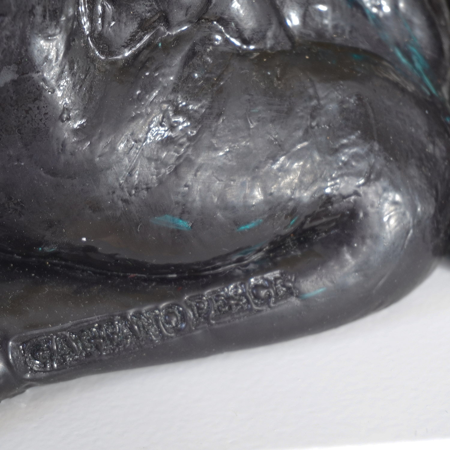 Une pièce unique en résine polyuréthane et plastique moulé teinté dans la masse. Signature du designer sur le pied du vase.
