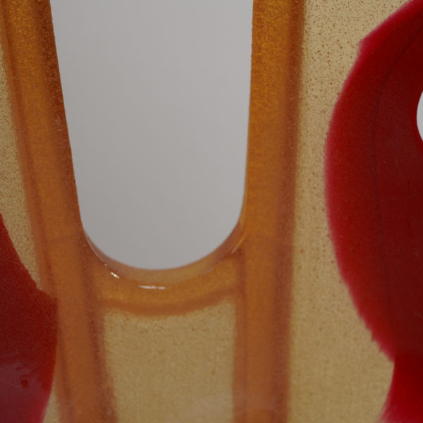 Collection “Nobody’s perfect” : Dès les années 70, Gaetano Pesce développe un processus de création qui laisse place à l’aléatoire, permettant ainsi la fabrication de pièces uniques au sein de productions en séries. En 2001, il collabore avec l’éditeur Zerodisegno pour réaliser une collection de meubles en résine : buffets, étagères, chaises, fauteuils et tables. L’artisan mixe couleurs et résine, coule la ou les pâtes obtenues dans le moule, et à l’aide d’une spatule, uniformise l’épaisseur de la résine. Parfois, il y mêle des arômes, choisis au grès des saisons. De son geste naît une forme qui n’est jamais tout à fait la même. En résultent des silhouettes anthropomorphes, plus ou moins transparentes selon la coloration, qui prennent la forme de chaises, de fauteuils, d’étagères… Pour Gaetano Pesce, il n’est pas nécessaire de fabriquer des structures rigides. Le meuble peut être souple et transparent, même si cela doit dérouter l’usager.