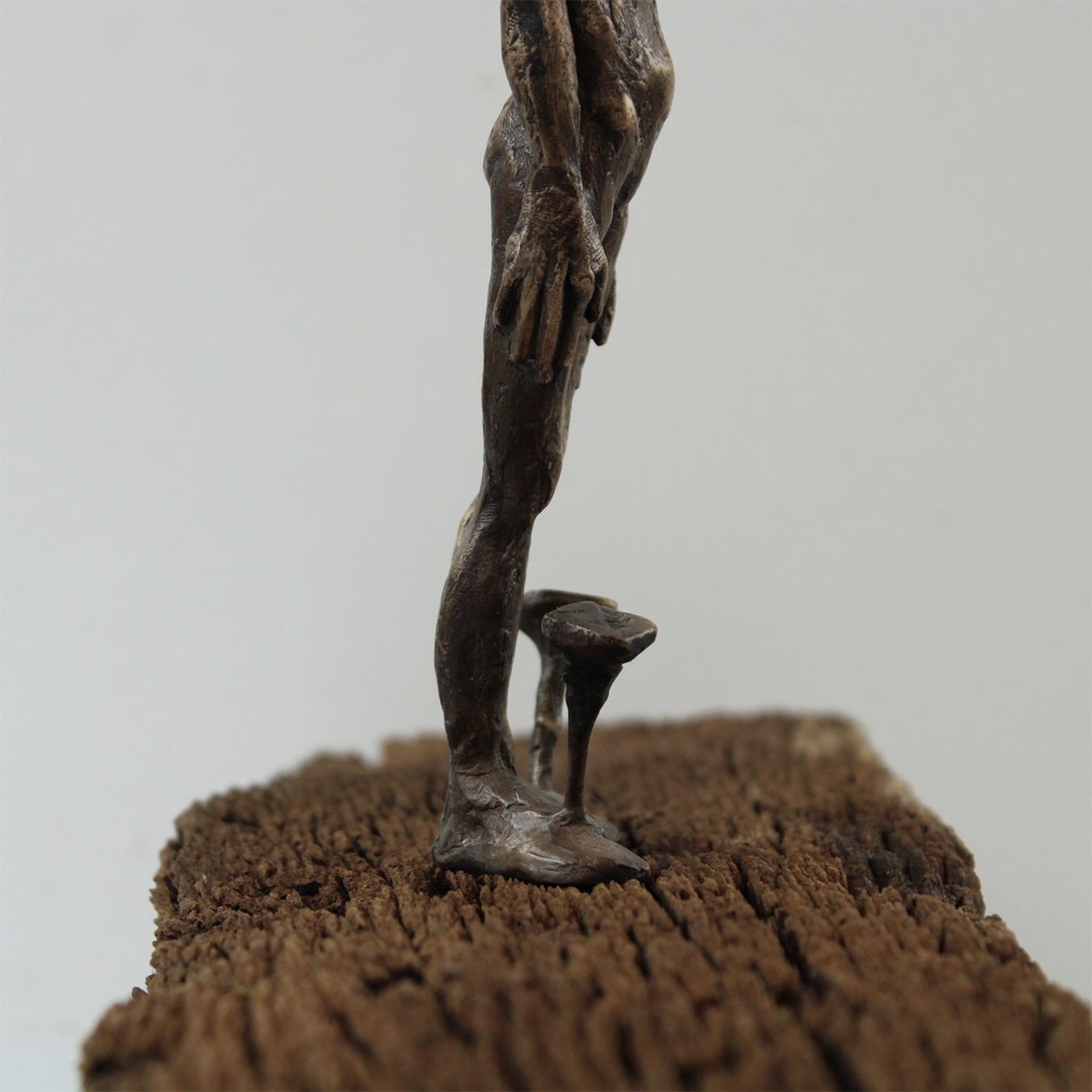 Inspiration : S’il est une chose que je cherche sans trop savoir où la trouver c’est la seule vérité qui vaille : celle que l’on se doit à soi-même. Mon travail interroge sur notre condition d’humain, sur nos questionnements et sur le courage de les affronter. Il ne me semble pas d’autre chemin possible que celui de la sincérité au premier degré, il faut être essentiel, évident, et mes pièces sont dénudées jusqu’à traduire une vérité existentielle dure et sans fard. Je ne laisse que le nécessaire, je conceptualise jusqu’à la question sans un mot de trop. Mais si le fond est lourd, la forme est légère, brute, franche et sans détour. Ainsi si la vie nous enlève le superficiel pour nous apparaitre crue et cruelle, j’enlève des copeaux de bois pour laisser la matière exprimer sa vérité. Les erreurs y sont écrites, les coups de lame, ceux qui nous façonnent. J’enlève ce qui est en trop jusqu’à ce que nos yeux ne puissent plus ignorer la question posée. Et la pièce est finie, je n’ai pas de réponse. À ma grande surprise il m’apparait alors que la vérité nue est une poésie.
