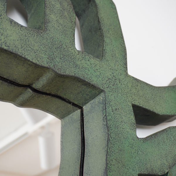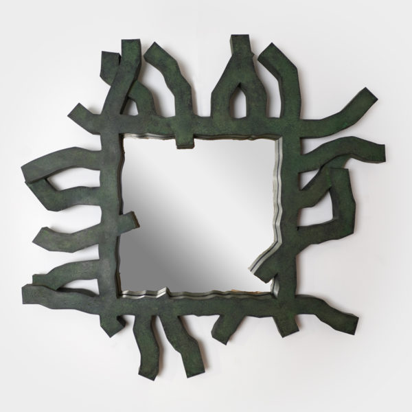 Miroir de fées en feuille de zinc patinée à la main. Une épure d’Yves Pagart rappelant les traits d’une tête de gorgone. Pièce unique.
