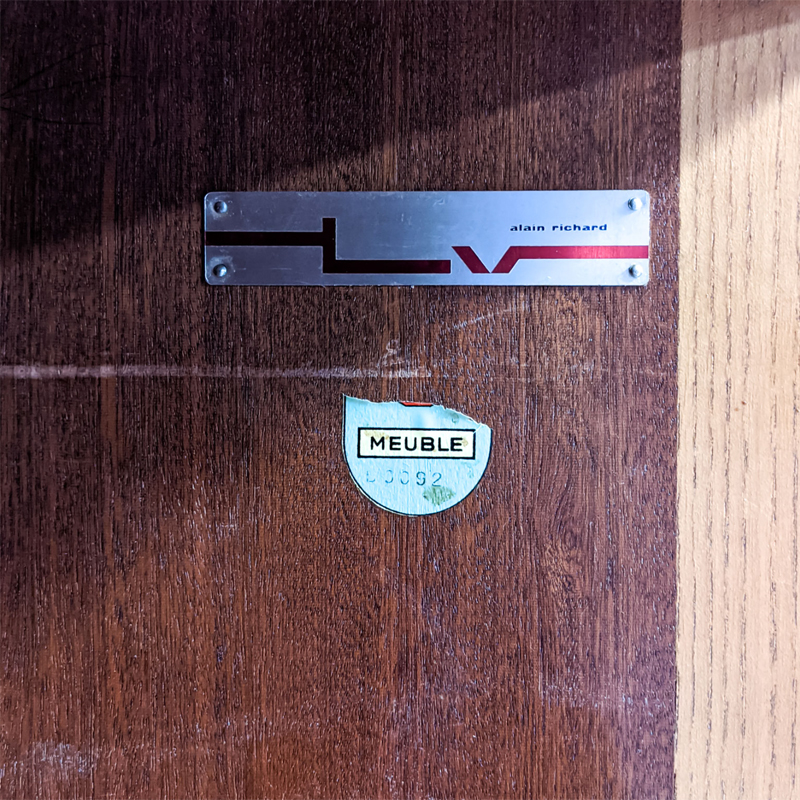 Designer français de renom, Alain Richard (1926 – 2017) est considéré comme l’une des figures les plus brillantes de sa génération. Diplômé de l’École nationale des arts décoratifs en 1949, il a d’abord travaillé avec son ancien professeur, René Gabriel, avant de partir aux Pays-Bas suite au décès de ce dernier. Là-bas, il a collaboré avec Hein Salomonson, puis est retourné à Paris en 1952 pour fonder son propre bureau d’études avec Jacqueline Iribe, créatrice de textiles d’ameublement. Dotés d’un fonctionnalisme rigoureux, ses premiers meubles ont été édités par Lavrilleux et Charron, puis par Meubles TV, où il a travaillé en collaboration avec André Monpoix. Ensemble, ils ont créé la célèbre Banquette 195 (1954), récompensée par le Prix de la triennale de Milan en 1954, suivi du Prix René Gabriel dix ans plus tard. Dans les années 70, Alain Richard a continué à briller avec des commandes du Mobilier national, des musées, des projets pour des groupes hôteliers, des stations de sports d’hiver, et même l’aménagement d’agences de prestige pour la BNP dans le monde entier.