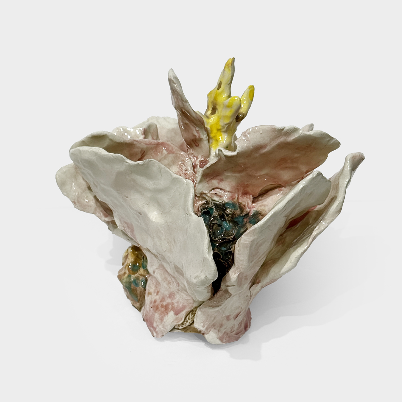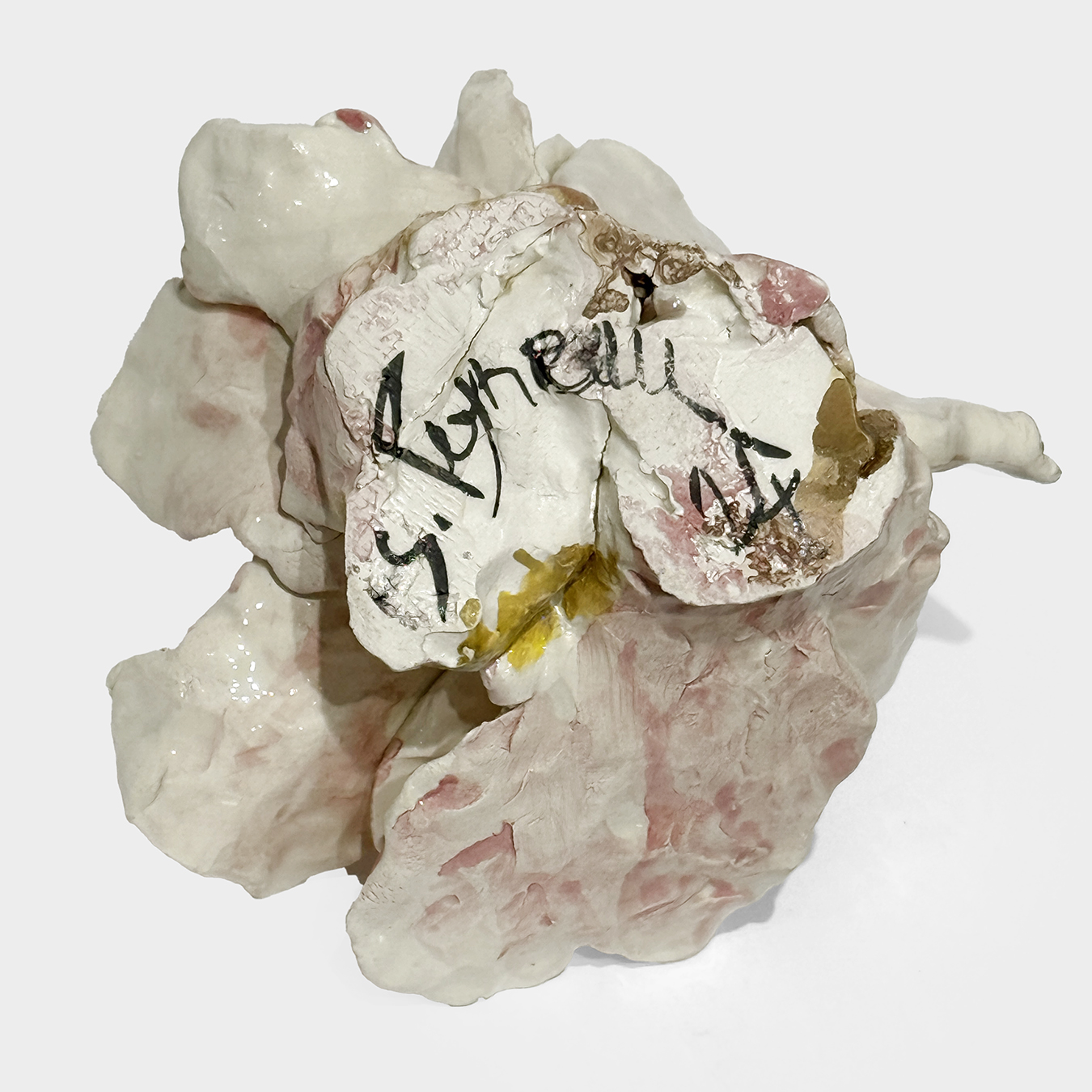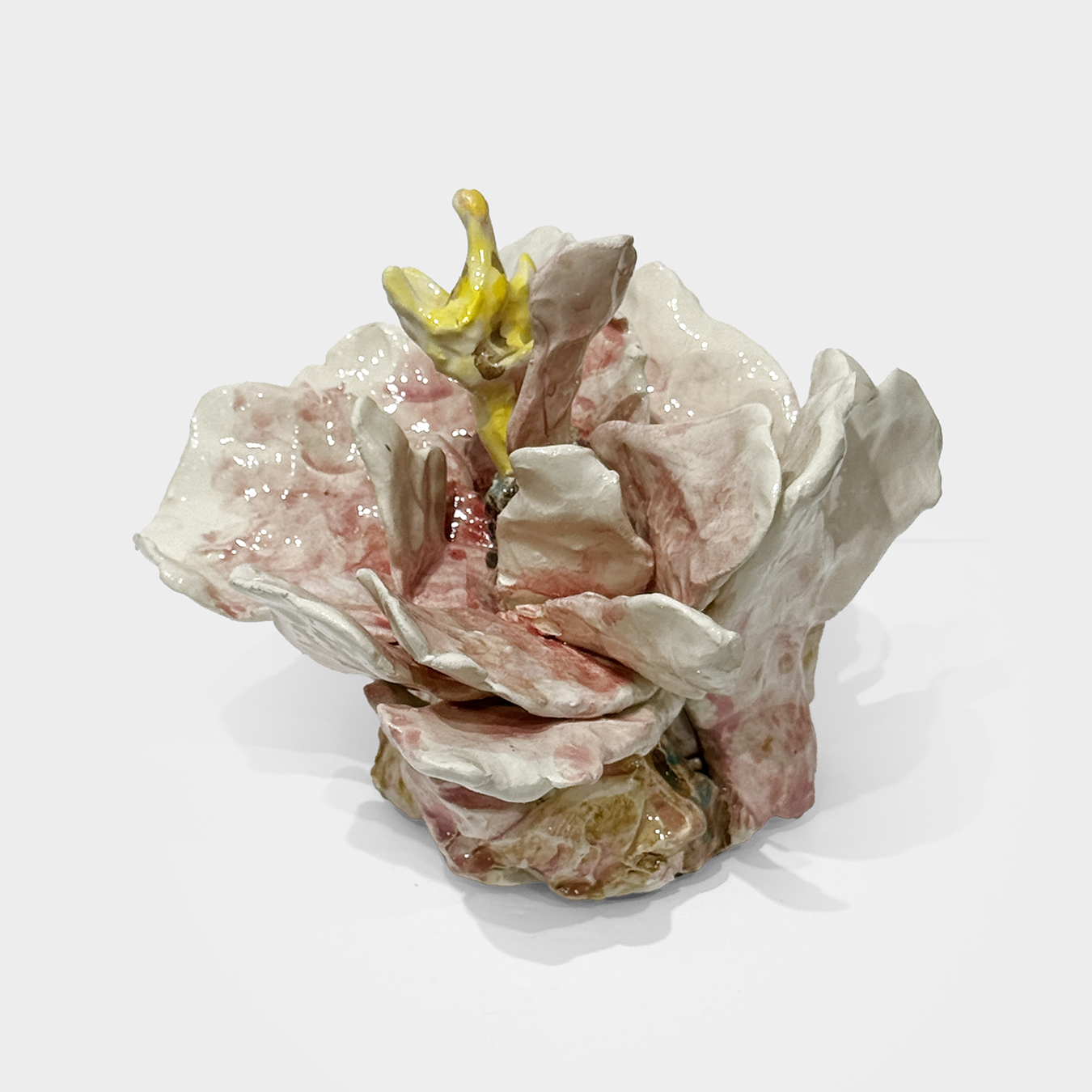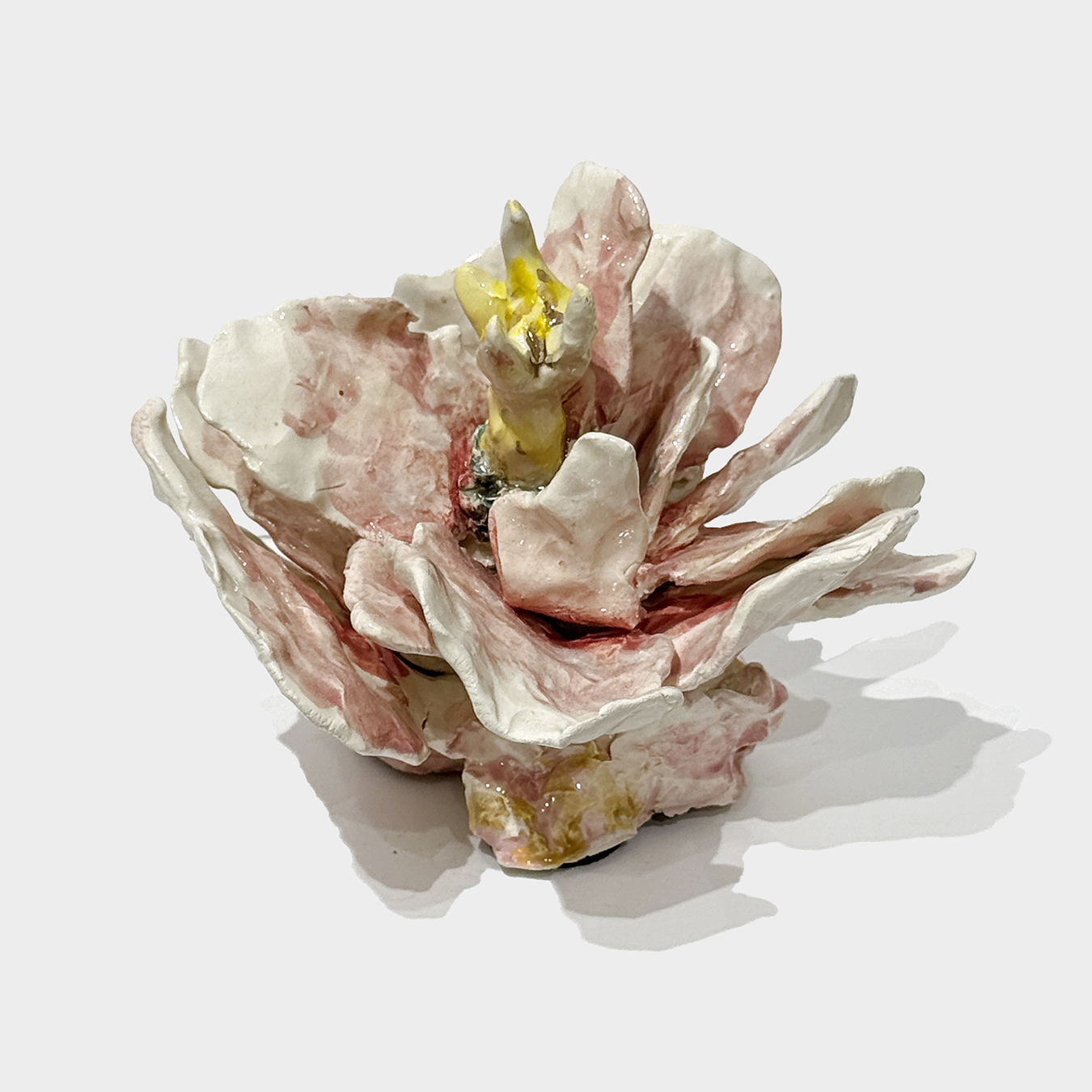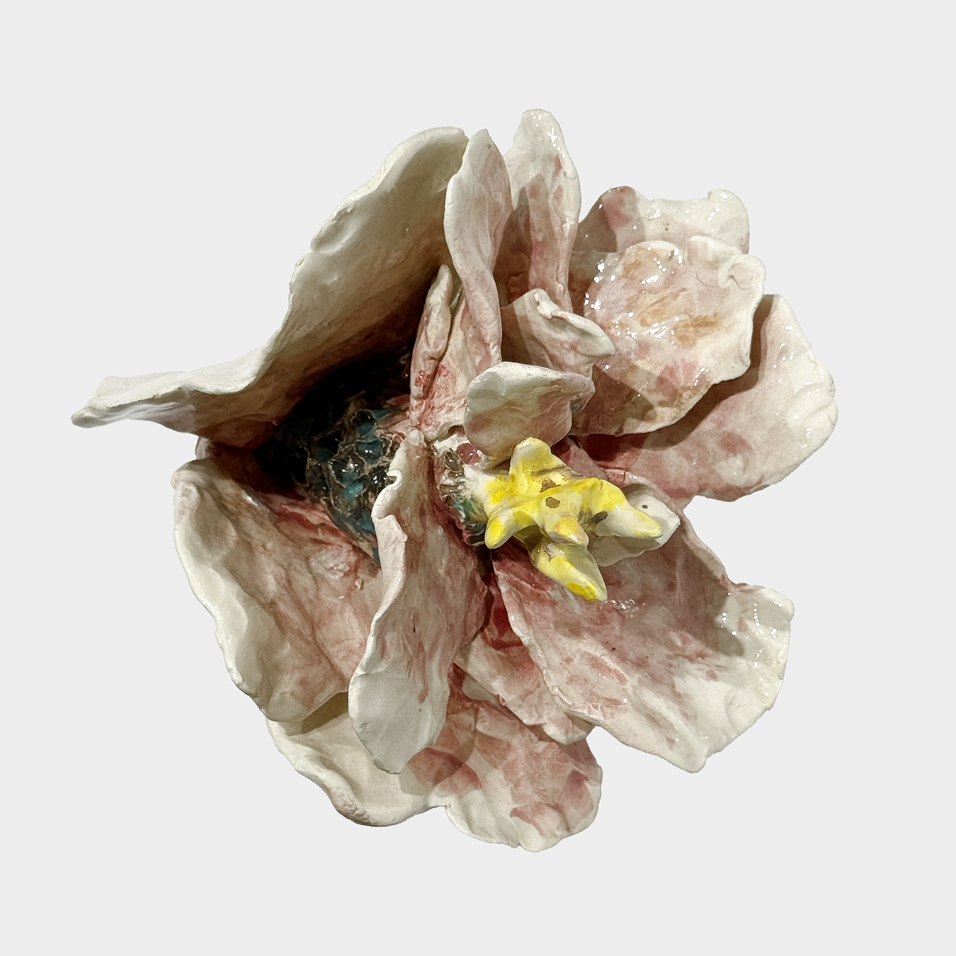 Fleur en céramique émaillée par Sylvie Peyneau. Chaque fleur incarne un travail méticuleux, alliant finesse du geste et élégance intemporelle. Un objet à la fois décoratif et poétique, reflet du savoir-faire de l’artiste.