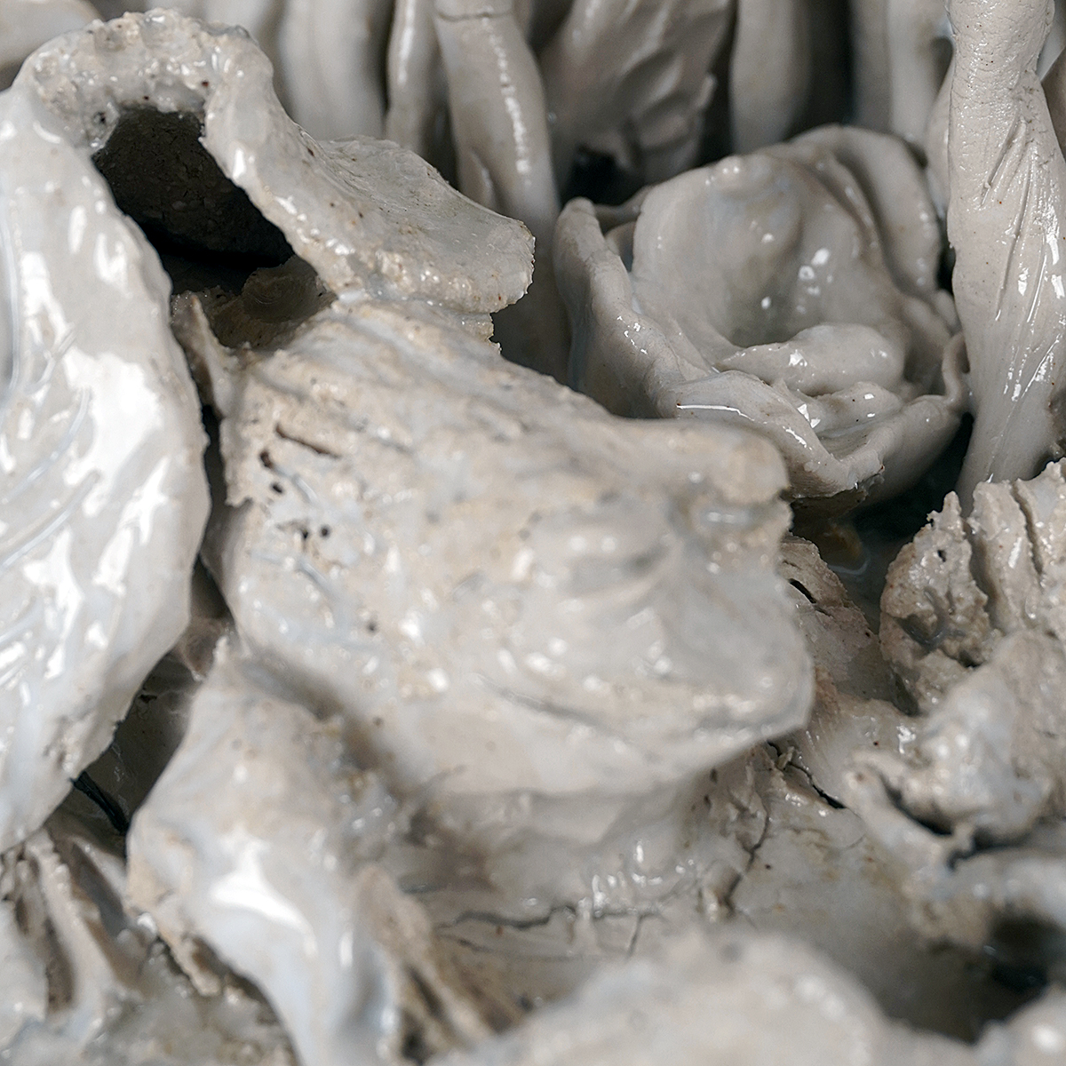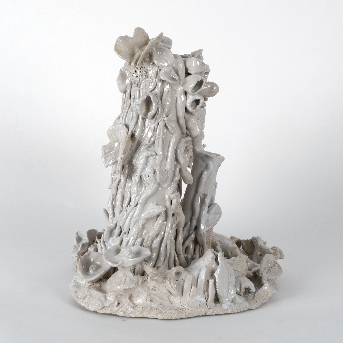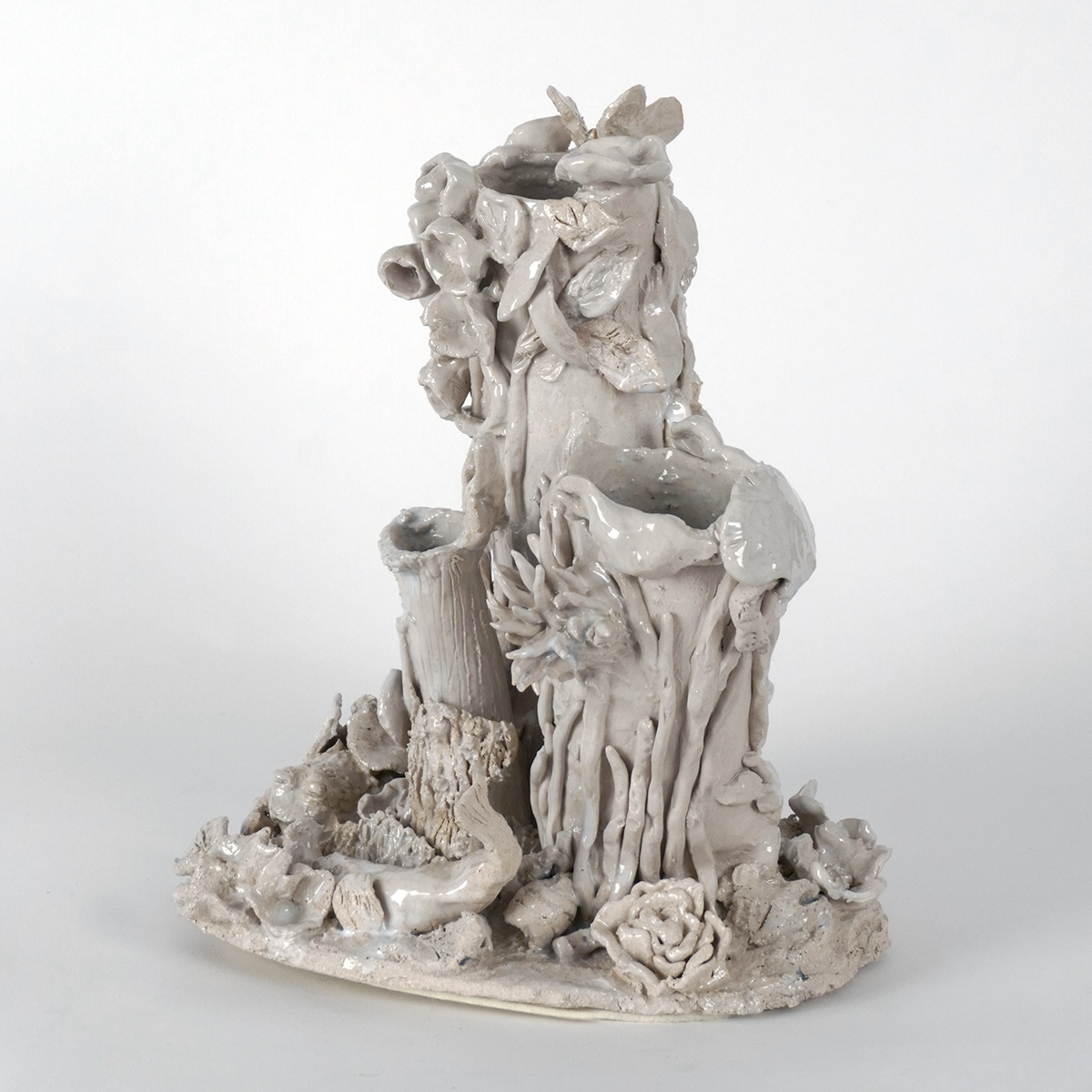 Inspiration : Catherine a une attirance particulière pour « l’Histoire Naturelle », l’environnement baroque et chaotique du sous-bois… “J’utilise la technique du modelage de pièces uniques, la main pilotée par une idée ou un souvenir, la couleur blanche évacuant l’imitation.”
