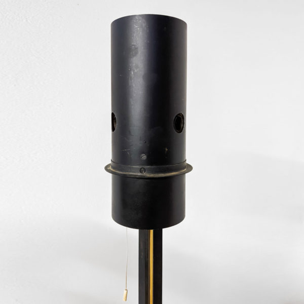 Lampadaire des années 50 en acier laqué noir et laiton réalisé par Arlus, célèbre éditeur français de luminaires dans la seconde moitié du XXe siècle.