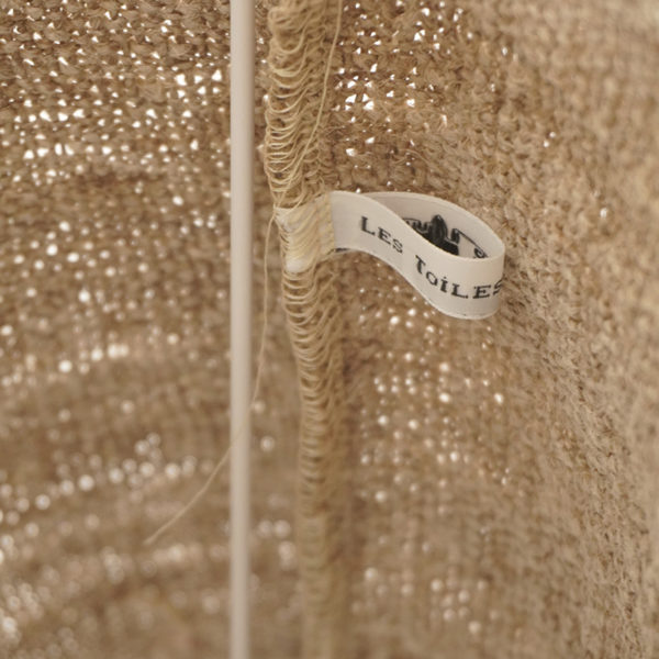 Matériaux : Piètement en grès émaillé, abat-jour en toile de lin ancien