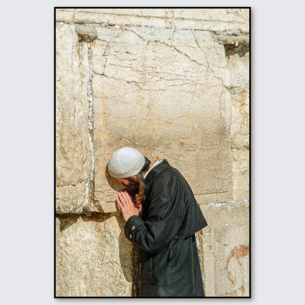 Photographie en couleur d’un pèlerin juif devant le Mur des Lamentations de Jérusalem, par Ferrante Ferranti.