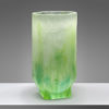 Vase sculptural de Nicolas Aubagnac en pâte de verre translucide flammée. Le vert se décline dans un grand nombre de tonalités subtiles évoquant l’eau de rivière traversée par la lumière du soleil.
