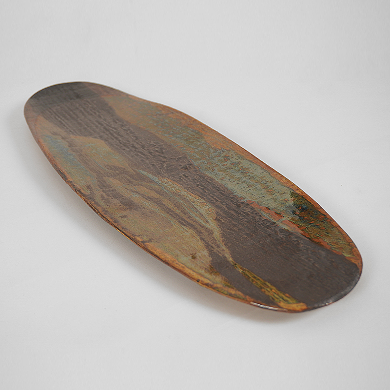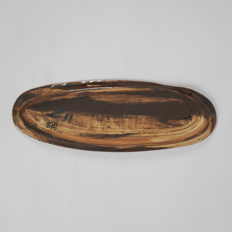Plateau en grès émaillé à haute température. Dans son atelier du Jura, Pierre Casenove crée des pièces uniques, brutes et fascinantes, qui révèlent la beauté de l’imperfection, de la simplicité et de la nature.