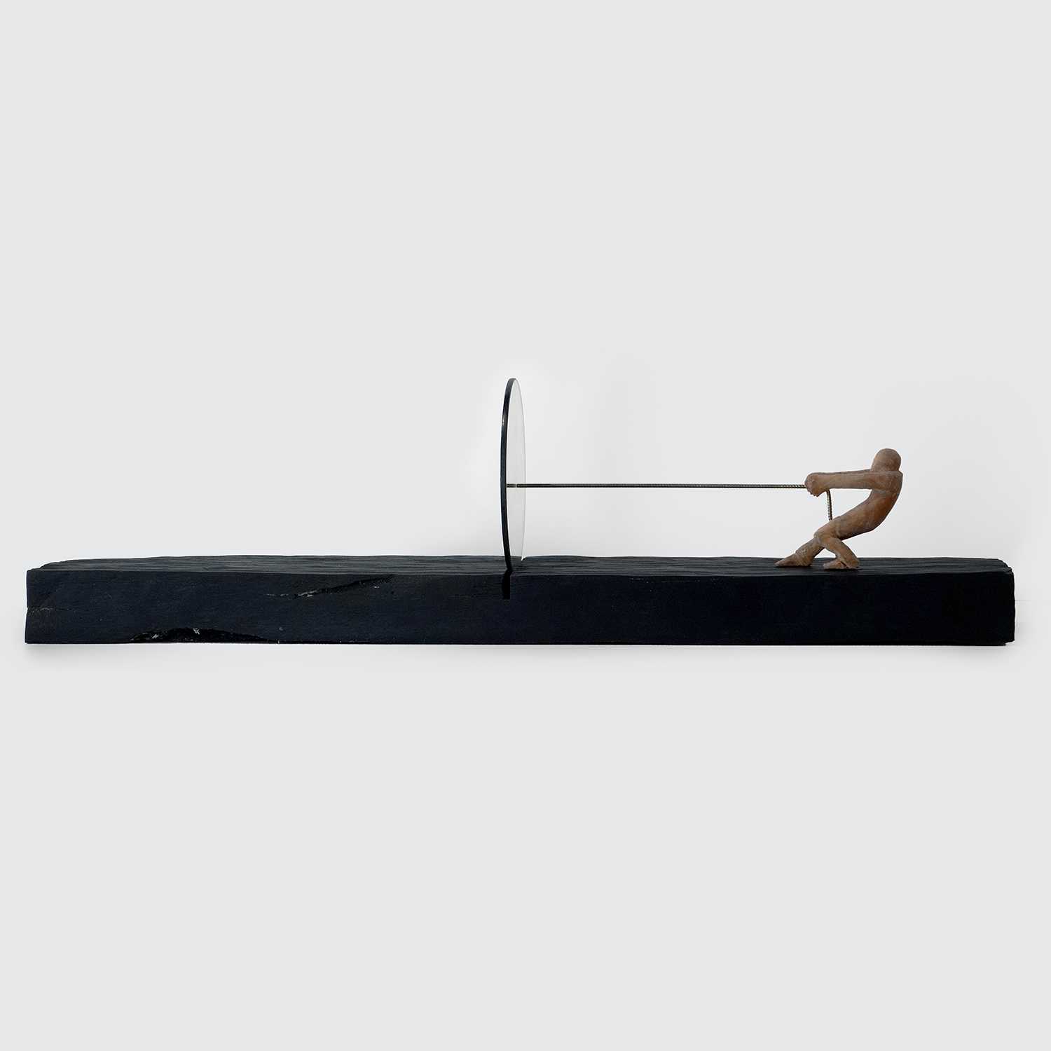Inspiration : S’il est une chose que je cherche sans trop savoir où la trouver c’est la seule vérité qui vaille : celle que l’on se doit à soi-même. Mon travail interroge sur notre condition d’humain, sur nos questionnements et sur le courage de les affronter. Il ne me semble pas d’autre chemin possible que celui de la sincérité au premier degré, il faut être essentiel, évident, et mes pièces sont dénudées jusqu’à traduire une vérité existentielle dure et sans fard. Je ne laisse que le nécessaire, je conceptualise jusqu’à la question sans un mot de trop. Mais si le fond est lourd, la forme est légère, brute, franche et sans détour. Ainsi si la vie nous enlève le superficiel pour nous apparaitre crue et cruelle, j’enlève des copeaux de bois pour laisser la matière exprimer sa vérité. Les erreurs y sont écrites, les coups de lame, ceux qui nous façonnent. J’enlève ce qui est en trop jusqu’à ce que nos yeux ne puissent plus ignorer la question posée. Et la pièce est finie, je n’ai pas de réponse. À ma grande surprise il m’apparait alors que la vérité nue est une poésie.