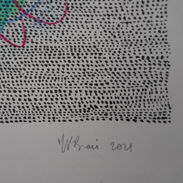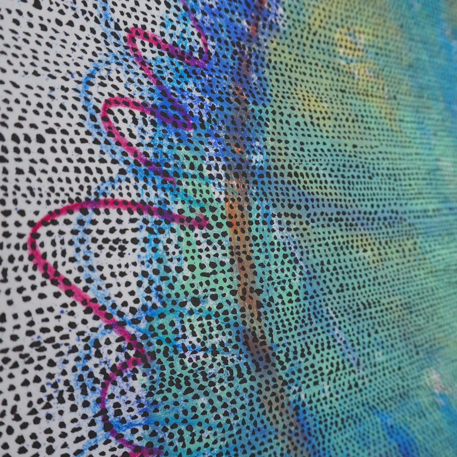 Inspiration : Par ses dessins abstraits, l’artiste nous plonge dans des mondes célestes ou subaquatiques, nous entraînant dans une contemplation sensorielle provoquée par son vocabulaire plastique fait de points, de lignes et de cercles