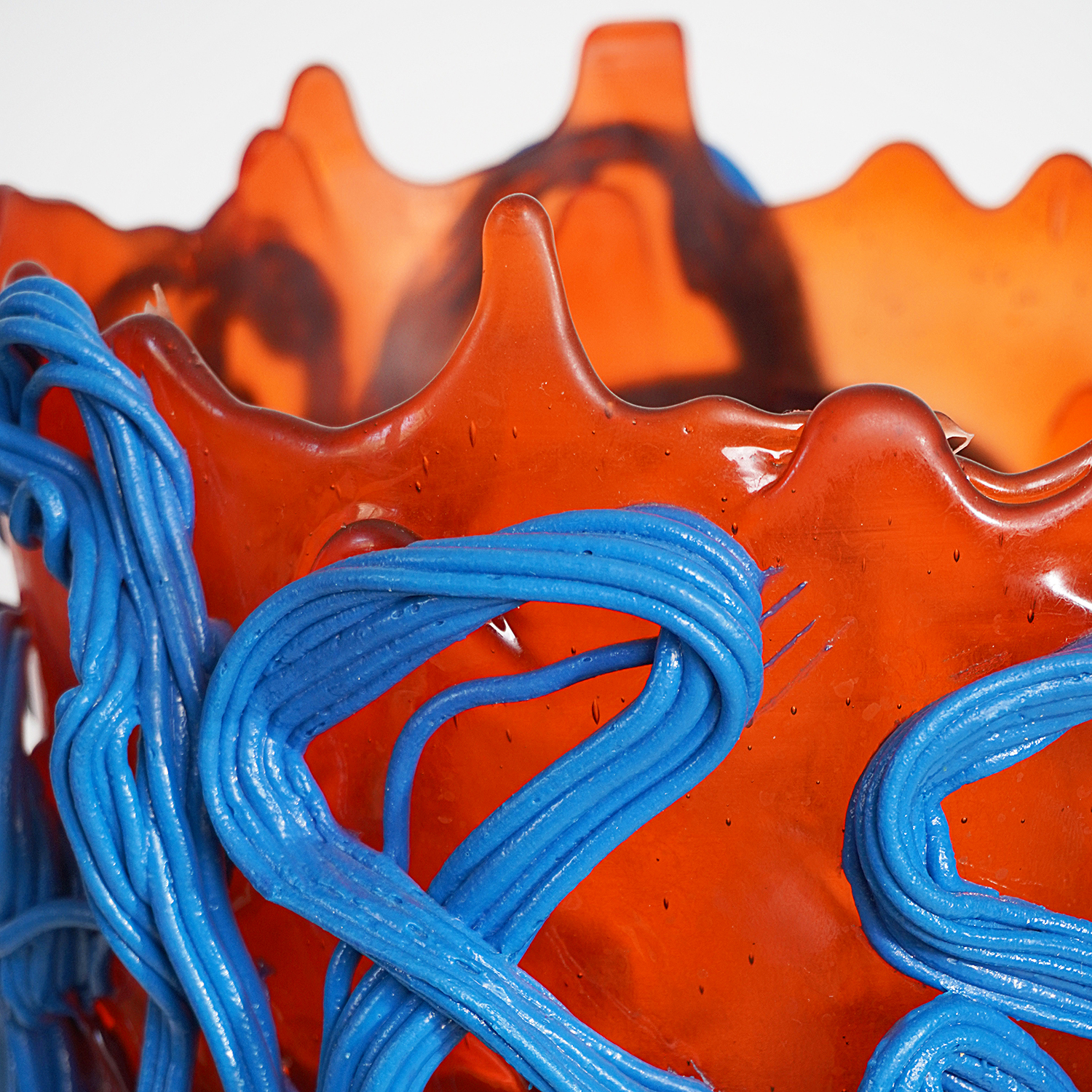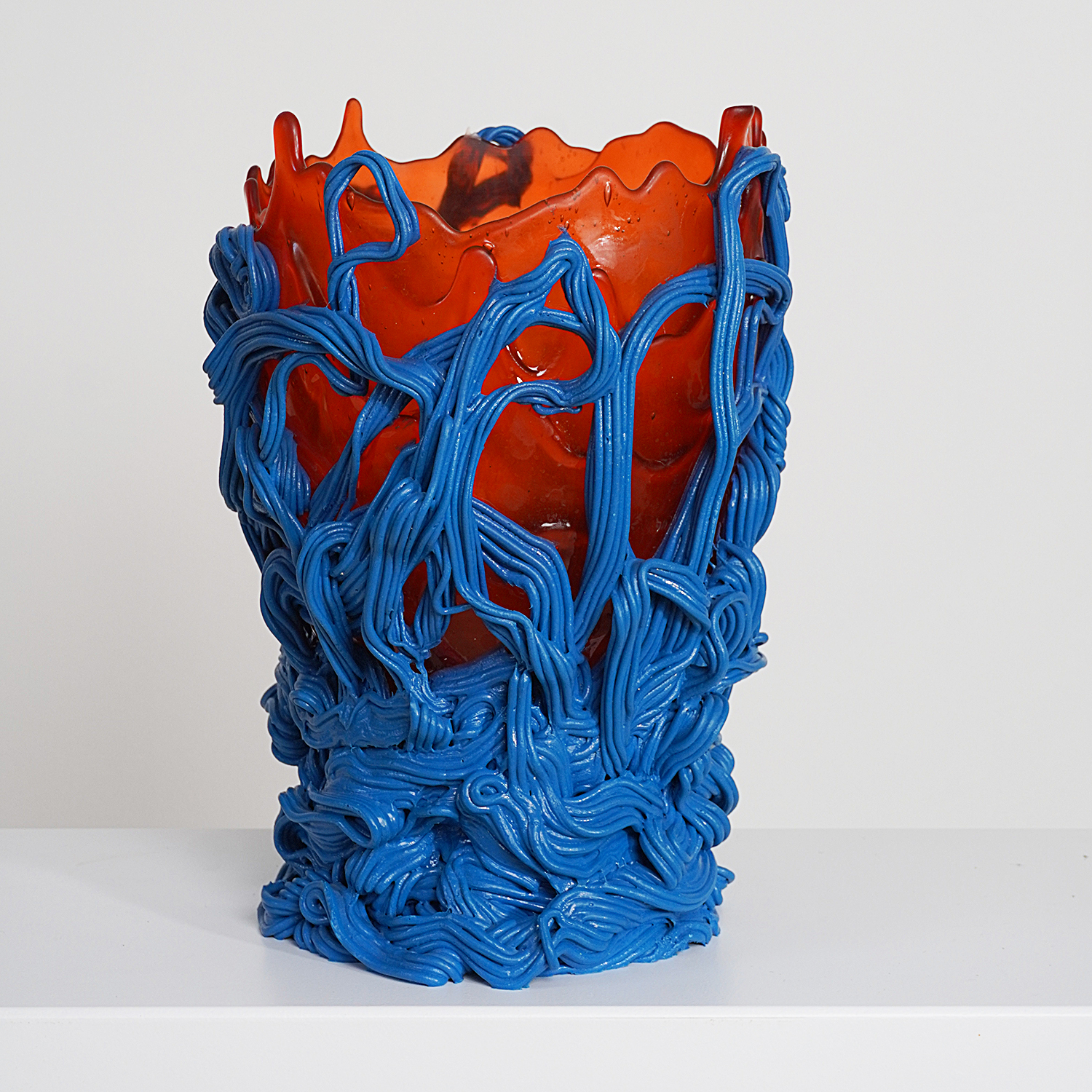 Vase rouge et bleu vintage en édition limitée de Gaetano Pesce, édité et fabriqué par Fish Design en 2010 sous la direction artistique de Gaetano Pesce.