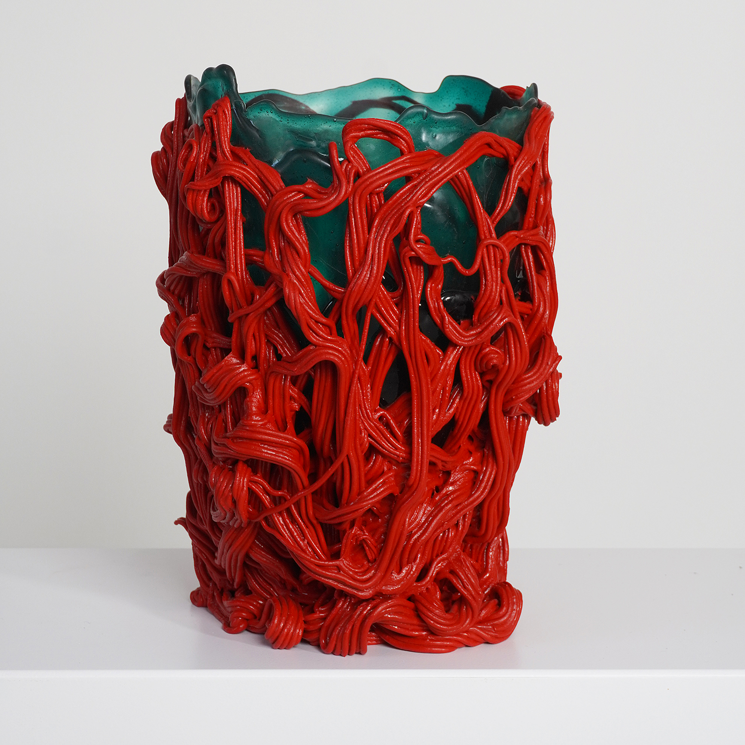 Vase rouge et vert vintage en édition limitée de Gaetano Pesce, édité et fabriqué par Fish Design en 2008 sous la direction artistique de Gaetano Pesce.