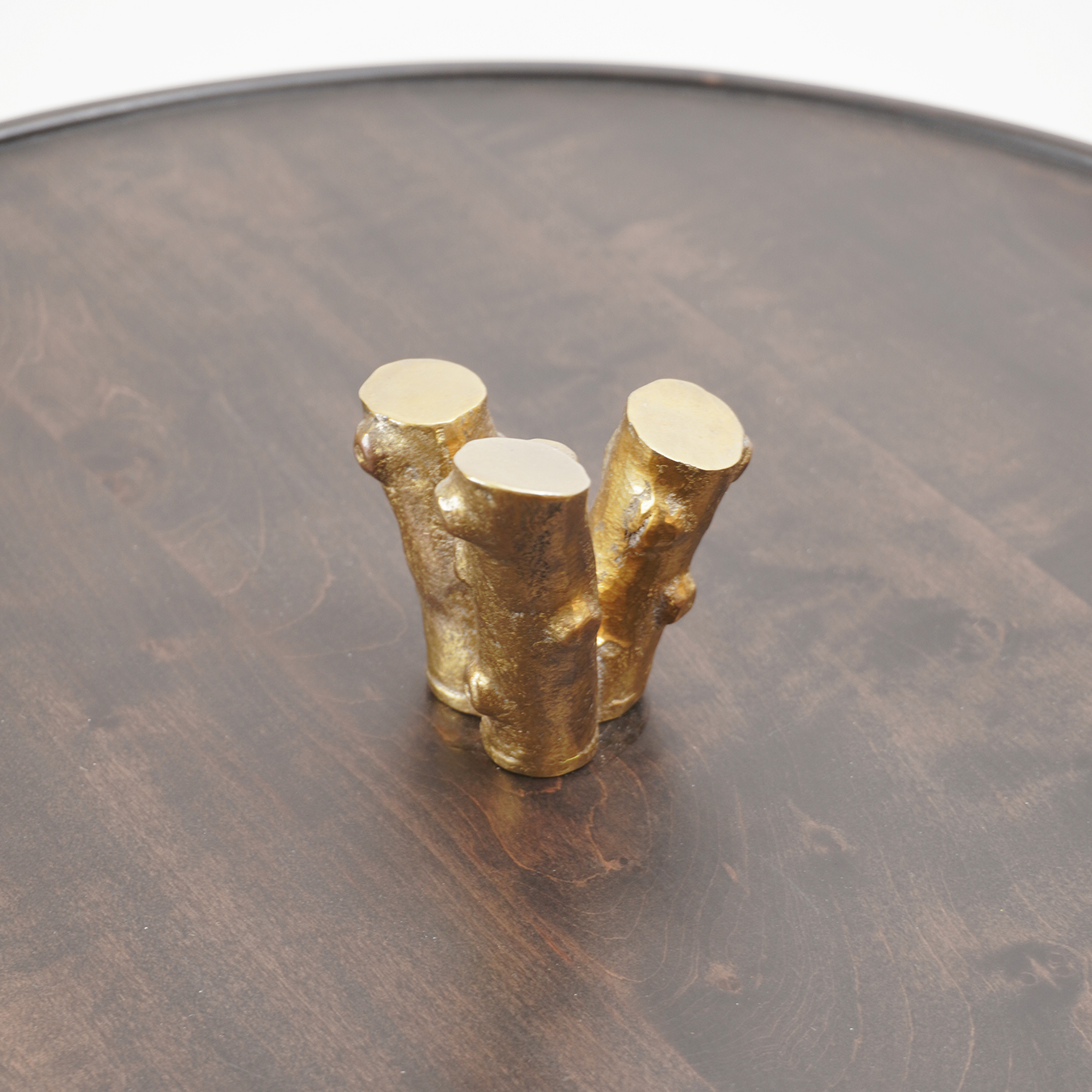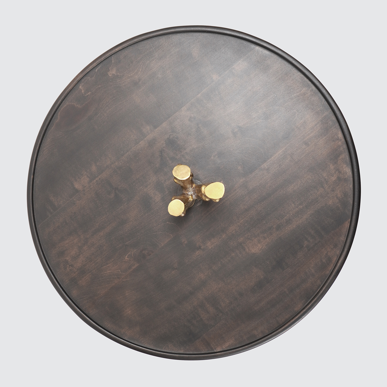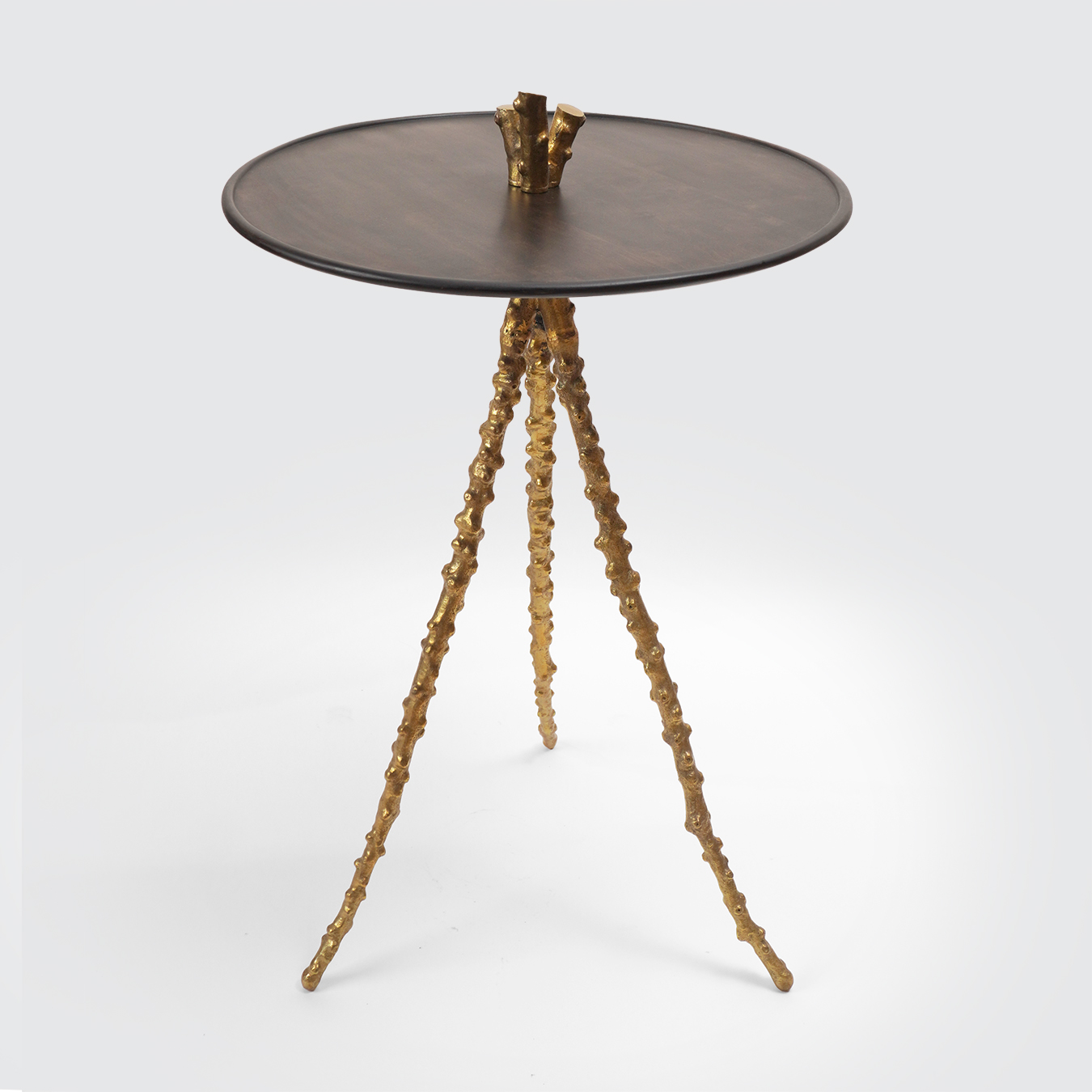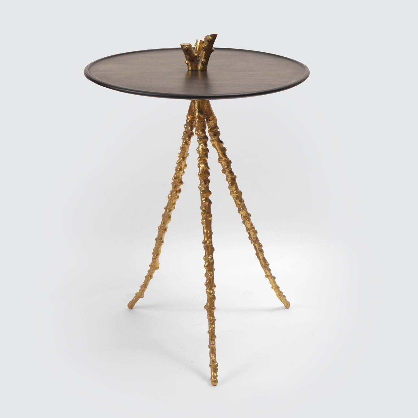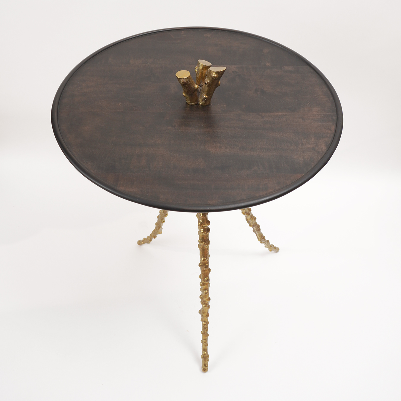 Matériaux : Piètement tripode en bronze poli à la main, plateau en bois de poirier noirci.