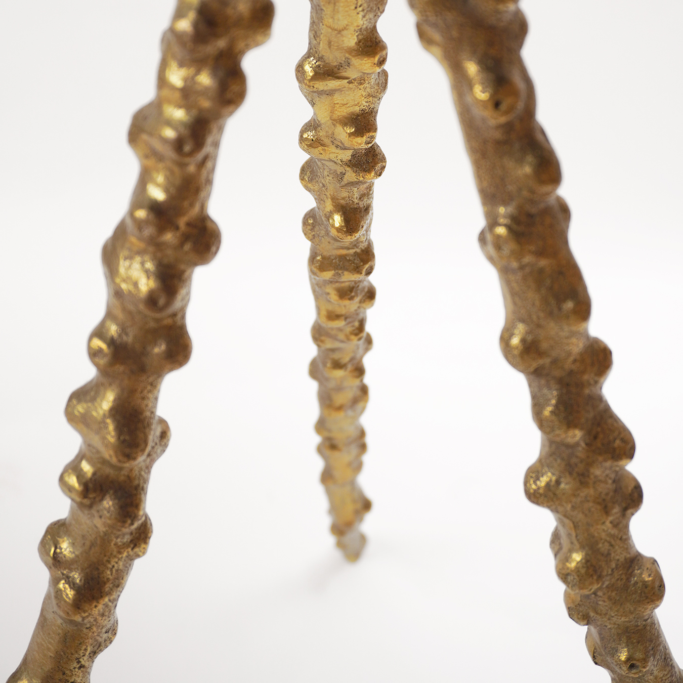 Table d’appoint zoomorphe fabriquée dans les ateliers d’Yves et Benjamin Pagart. Telles de fines antennes en bronze, le piètement tripode supporte un plateau en bois de poirier noirci patiné.