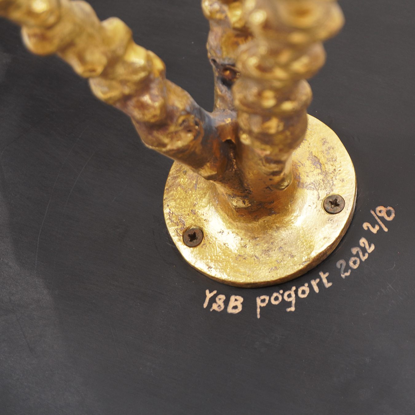 Benjamin Pagart vit et travaille dans l’effervescence et le bouillonnement culturel de son atelier parisien quand Yves s’inspire des richesses naturelles de la vallée du Lot, prés de Cahors. Leurs pièces sont issues de la fusion créative de leurs univers respectifs. Yves prépare soigneusement chaque prototype pour la fonte et Benjamin s’occupe de l’ébénisterie et de la fabrication. Le bronze et les bois précieux sont leurs matières de prédilection.