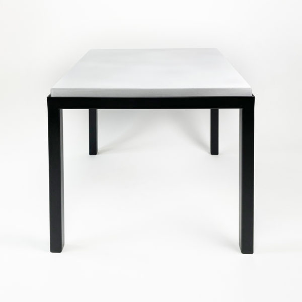 Matériaux : plateau en pierre de lave émaillée, piétement en métal laqué noir.