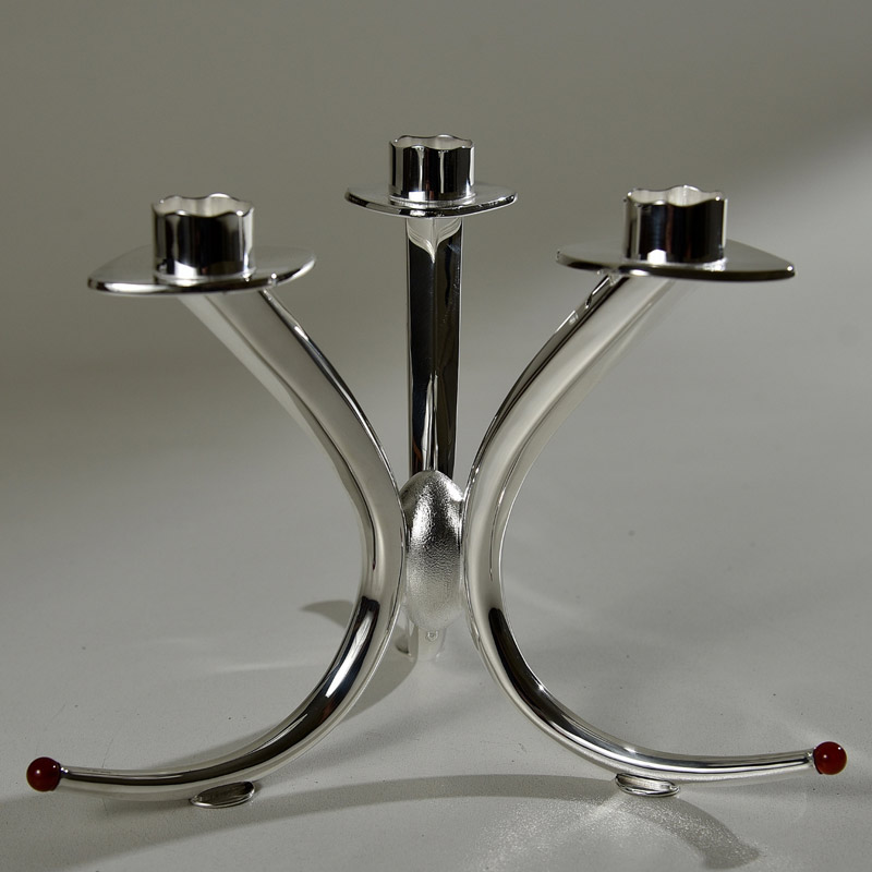 Candelabre à 3 branches en argent et cornaline