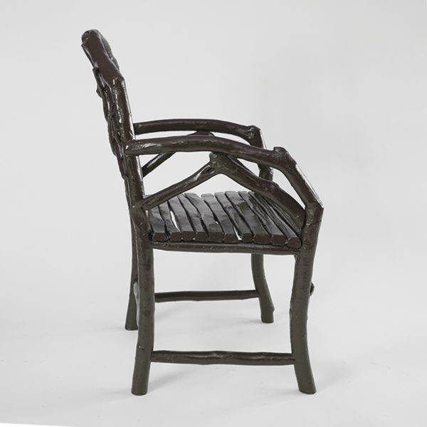 Matériaux : Fauteuil en bois laqué brun pour l’intérieur et l’extérieur.