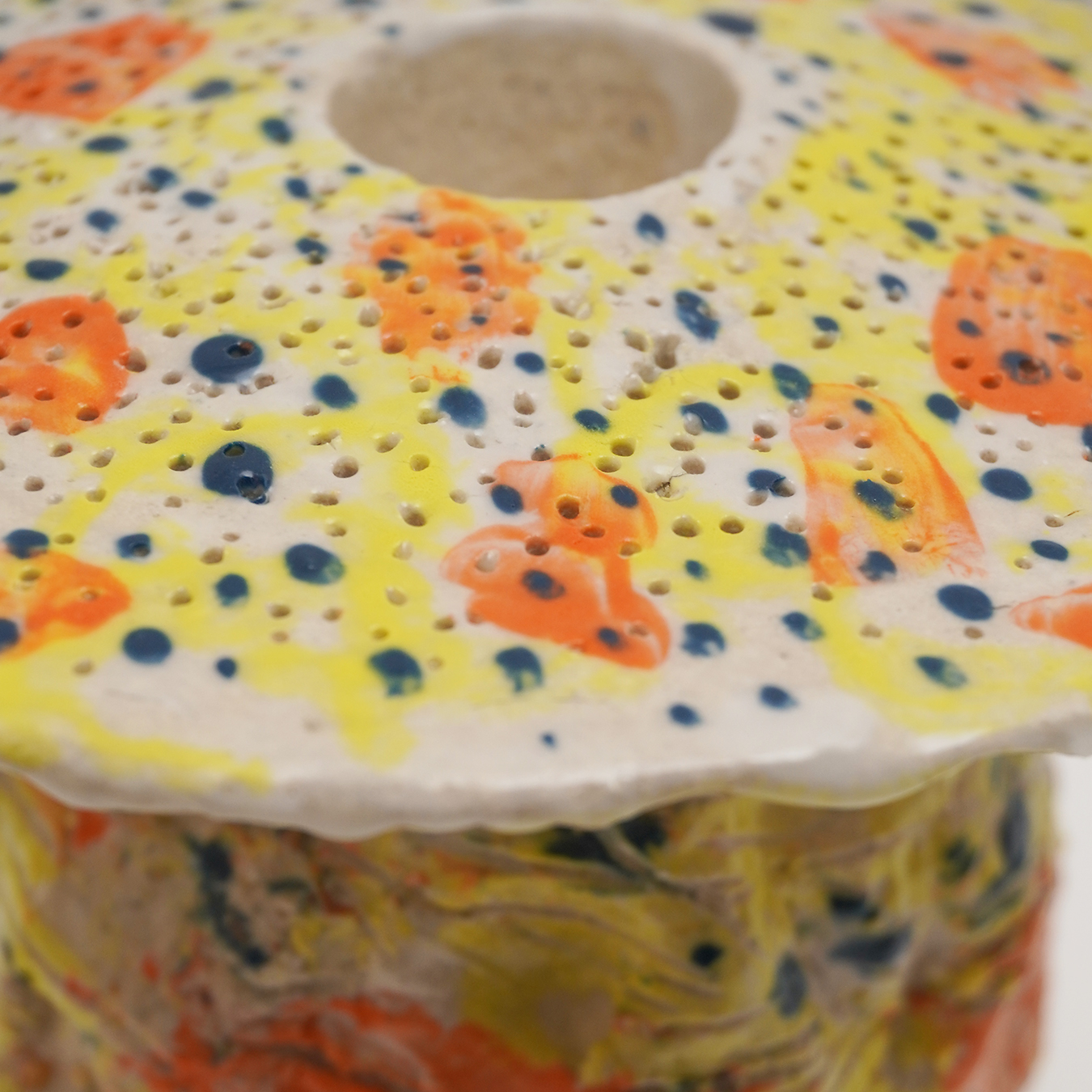 Vase sculpture unique en grés émaillé à décor d’engobes et d’oxydes de Marie-Pierre Biau