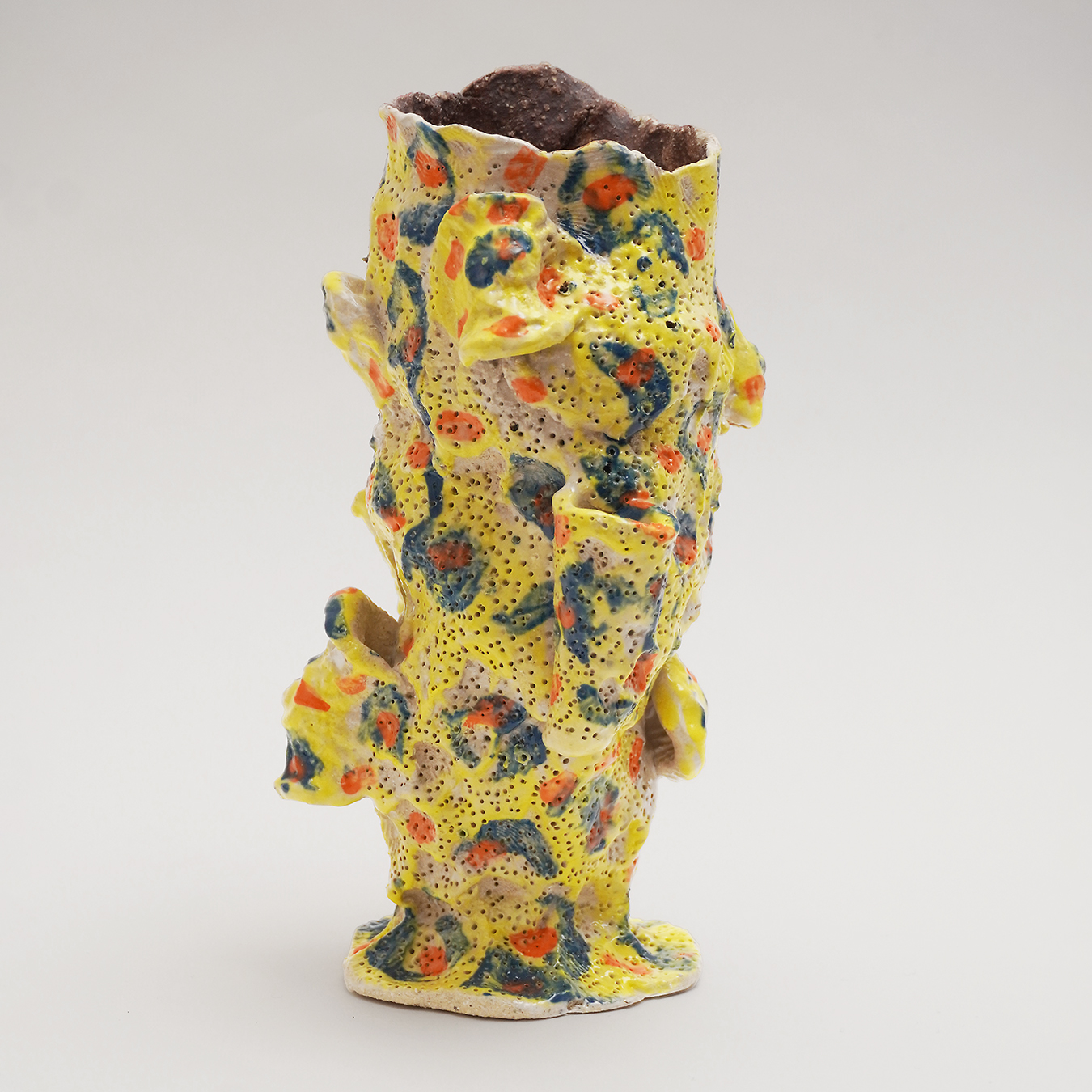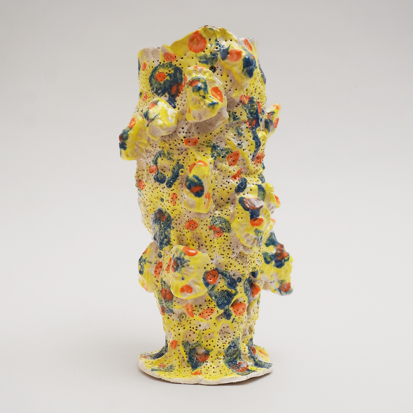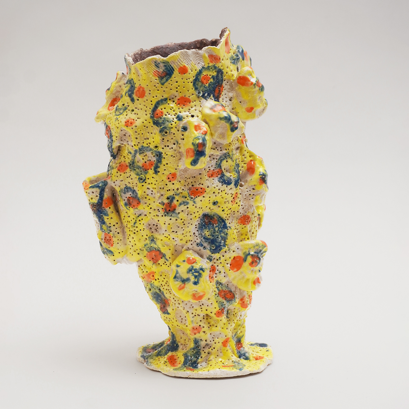 VASE COQUILLE 8 JAUNE GRES BLANC M