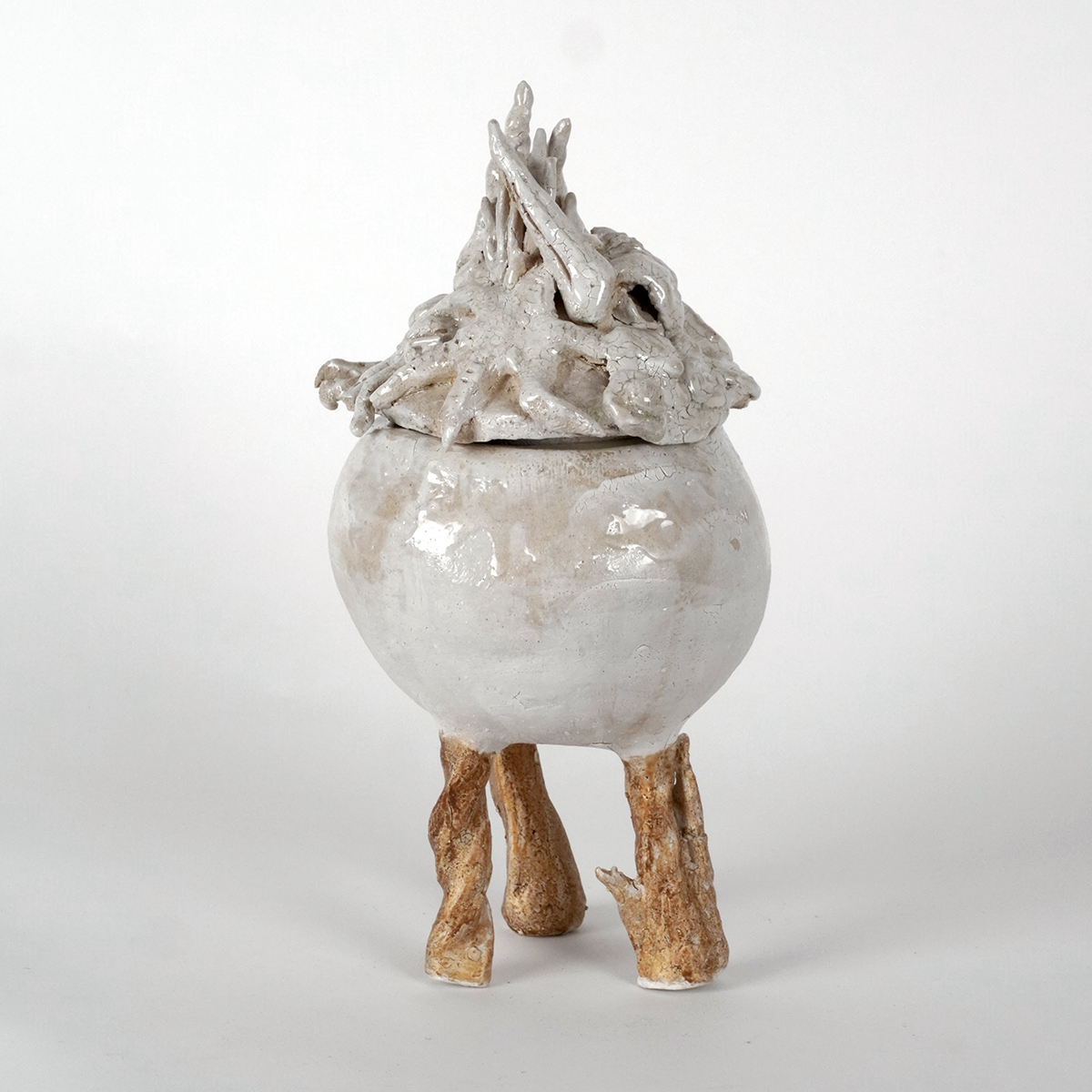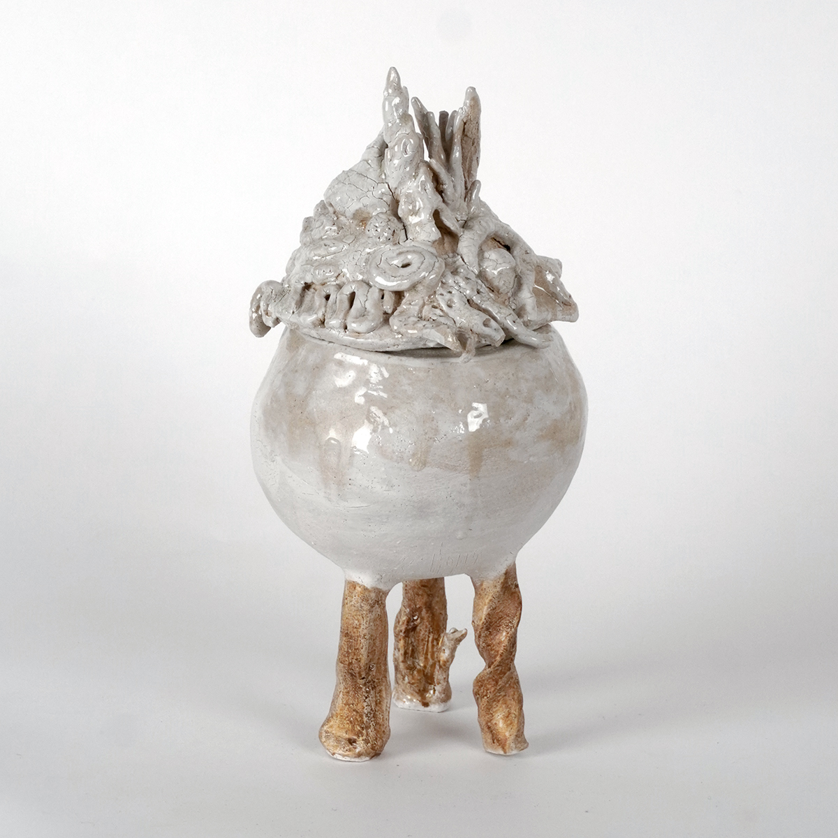 Inspiration : Catherine a une attirance particulière pour « l’Histoire Naturelle », l’environnement baroque et chaotique du sous-bois… “J’utilise la technique du modelage de pièces uniques, la main pilotée par une idée ou un souvenir, la couleur blanche évacuant l’imitation.”